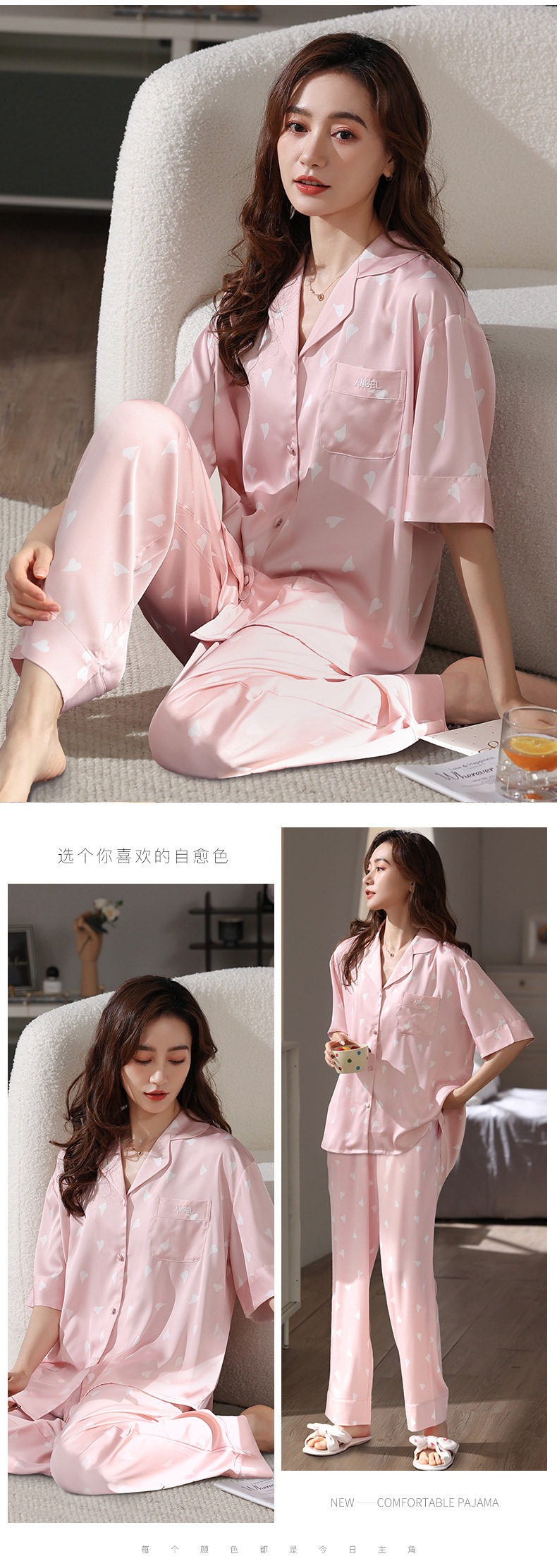 잠옷 여성 여름 얇은 쿨 아이스 실크 잠옷 귀여운 스위트 홈 옷 아내와 여자 친구를위한 여성 세트