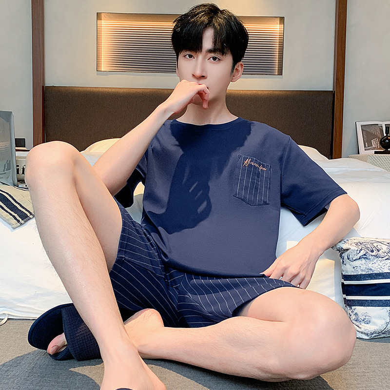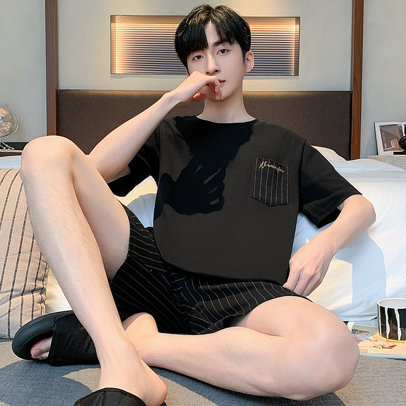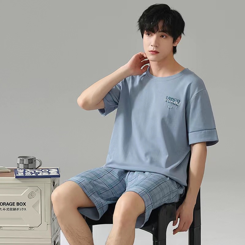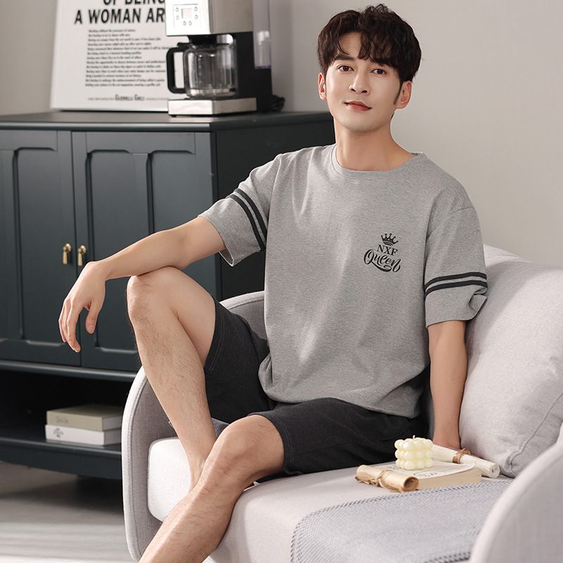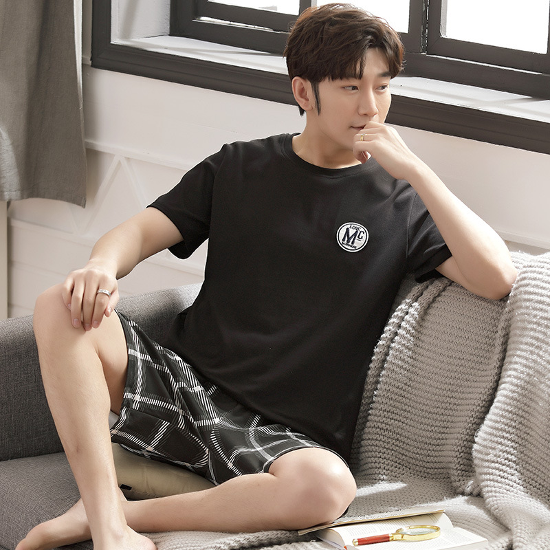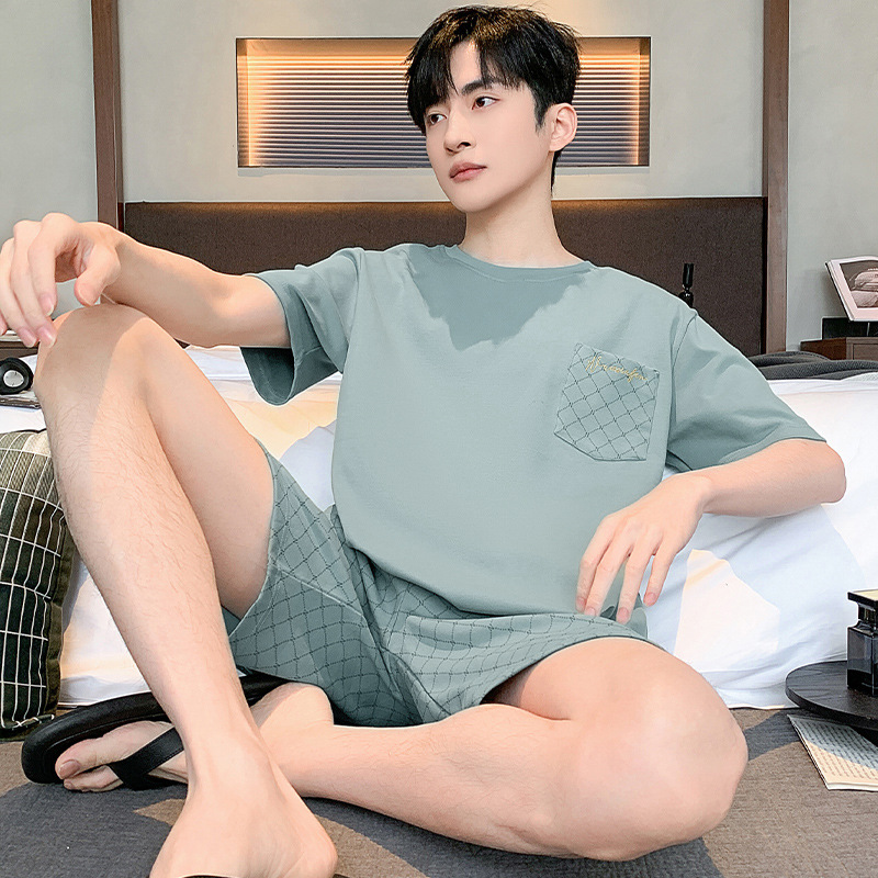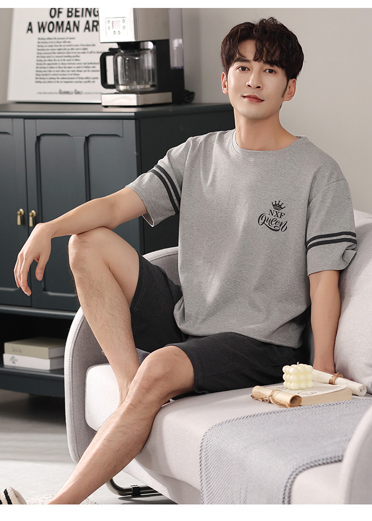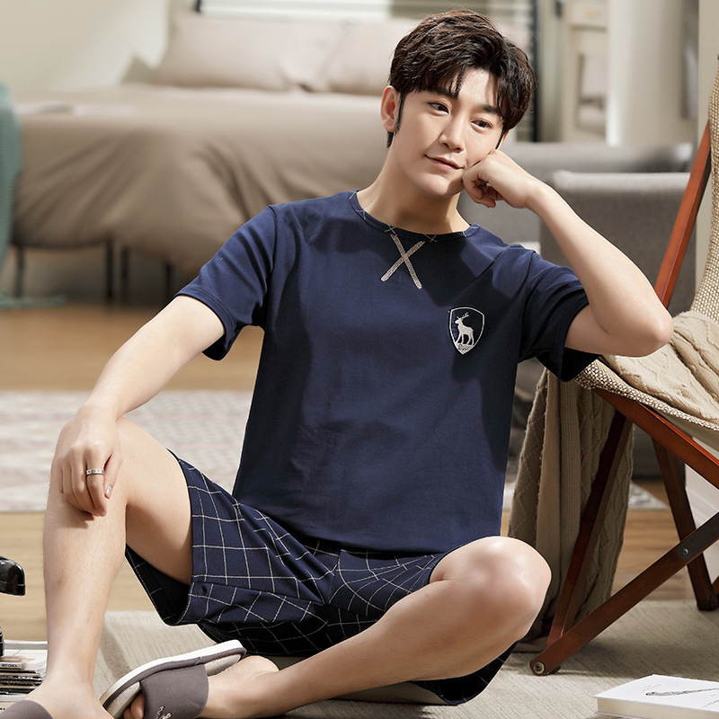 2025 새로운 도착 파자마 남자 여름 반팔 코튼 캐주얼 홈 의류 플러스 사이즈 남성 청소년 잠옷스토어 가기