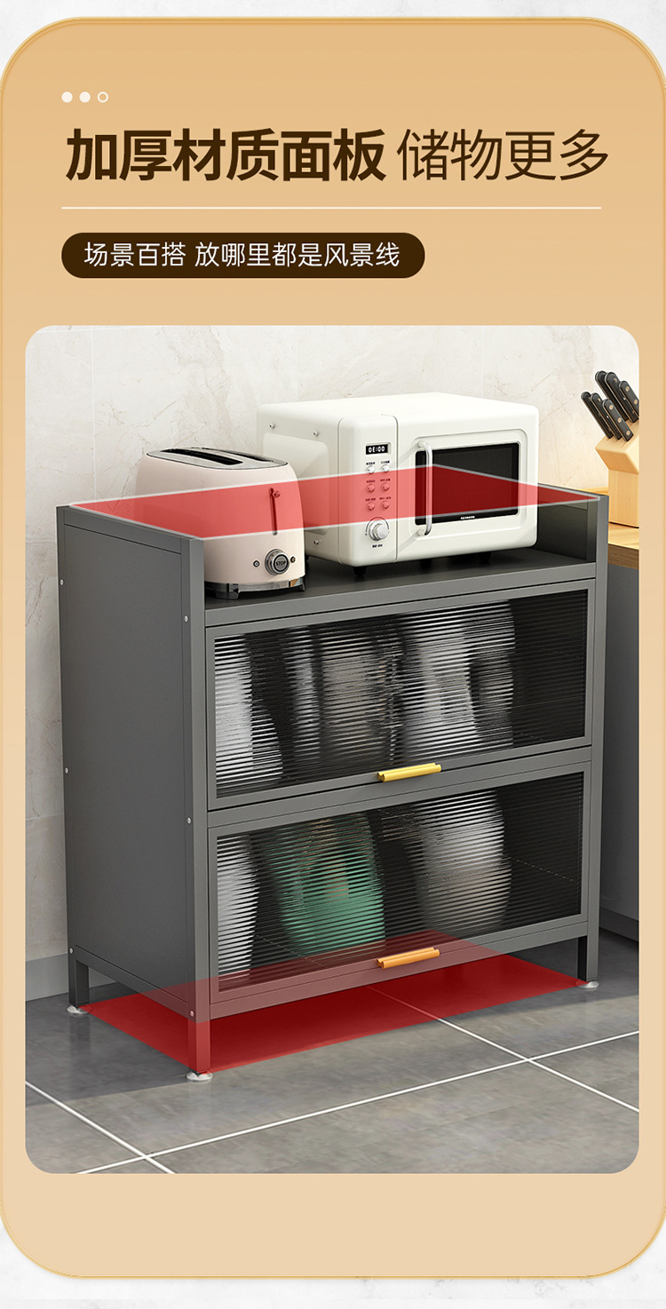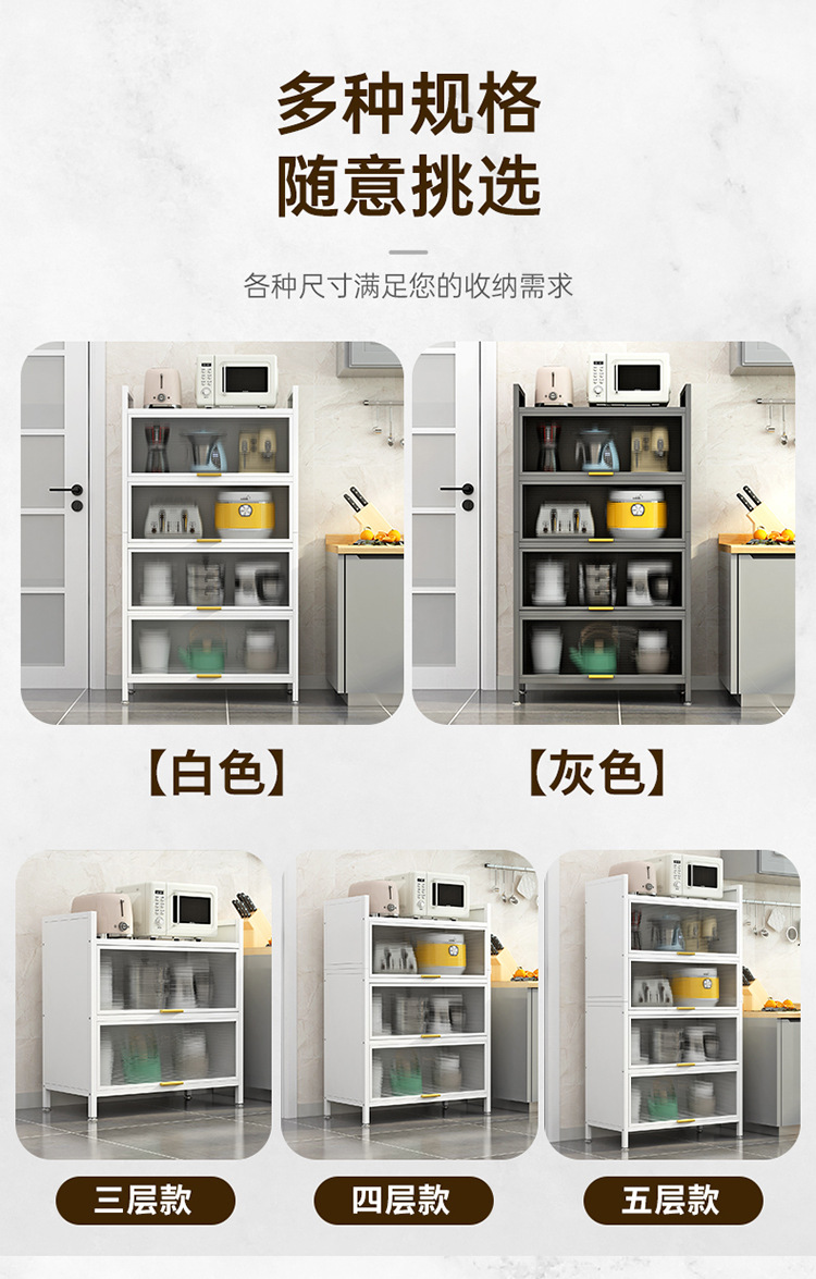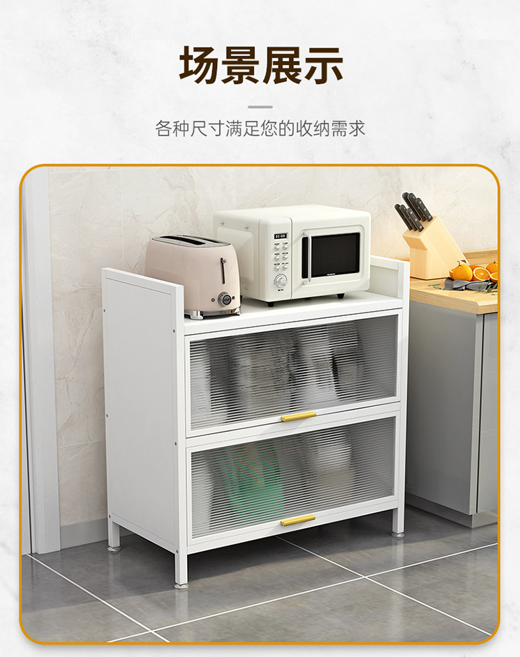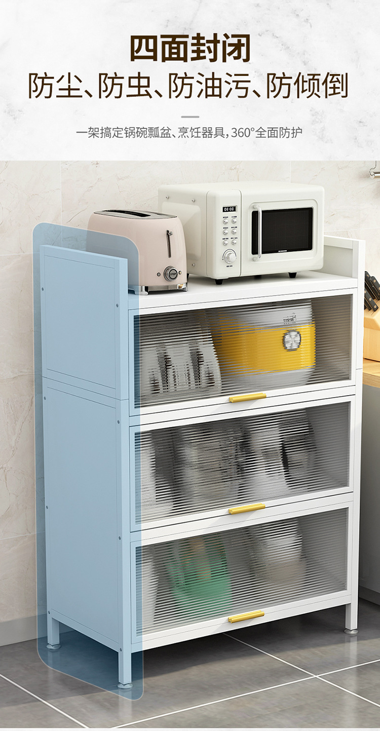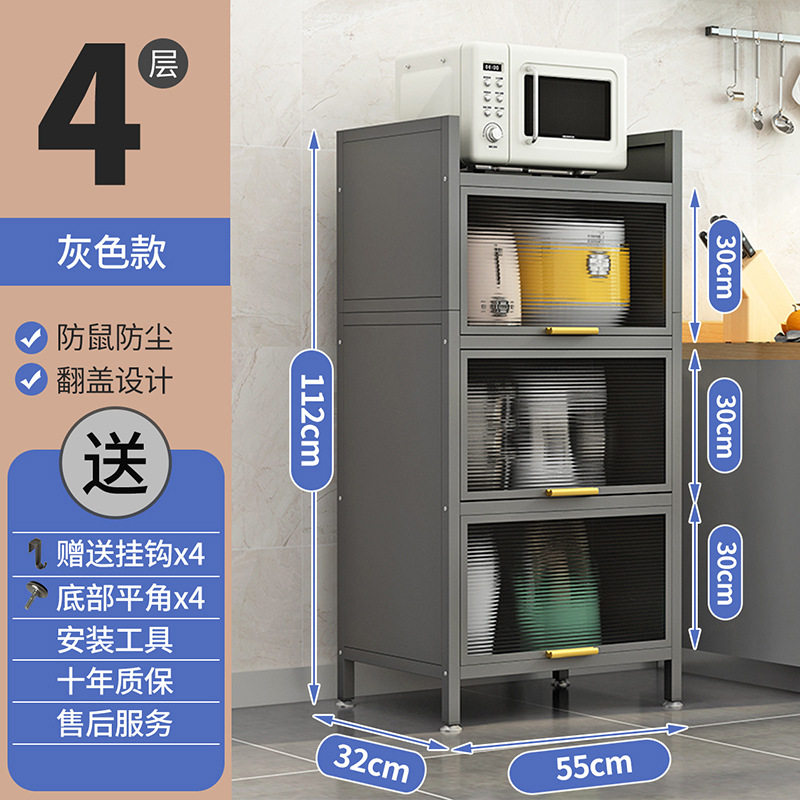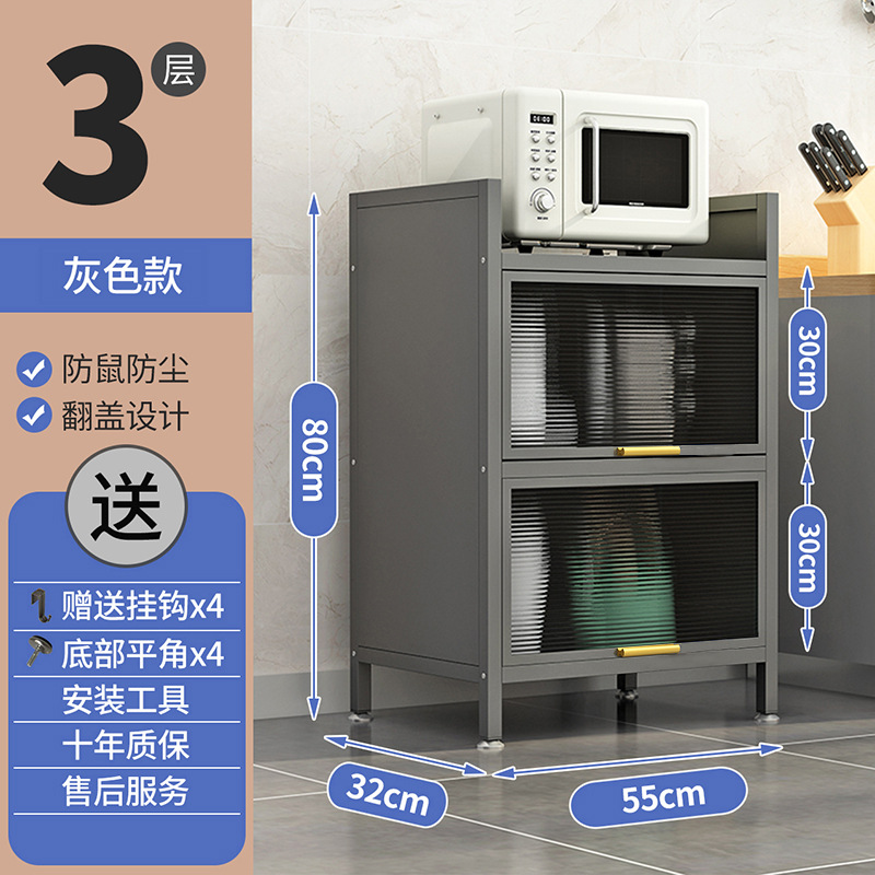 도어 플립 커버 주방 바닥형 다층 수납 랙 전자 레인지 방진 다기능 수납 캐비닛