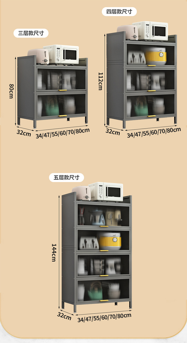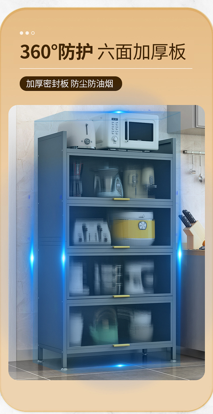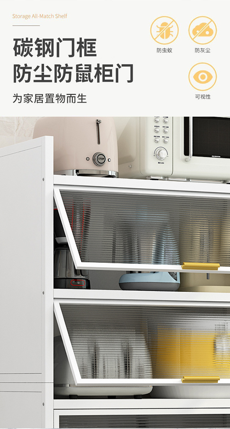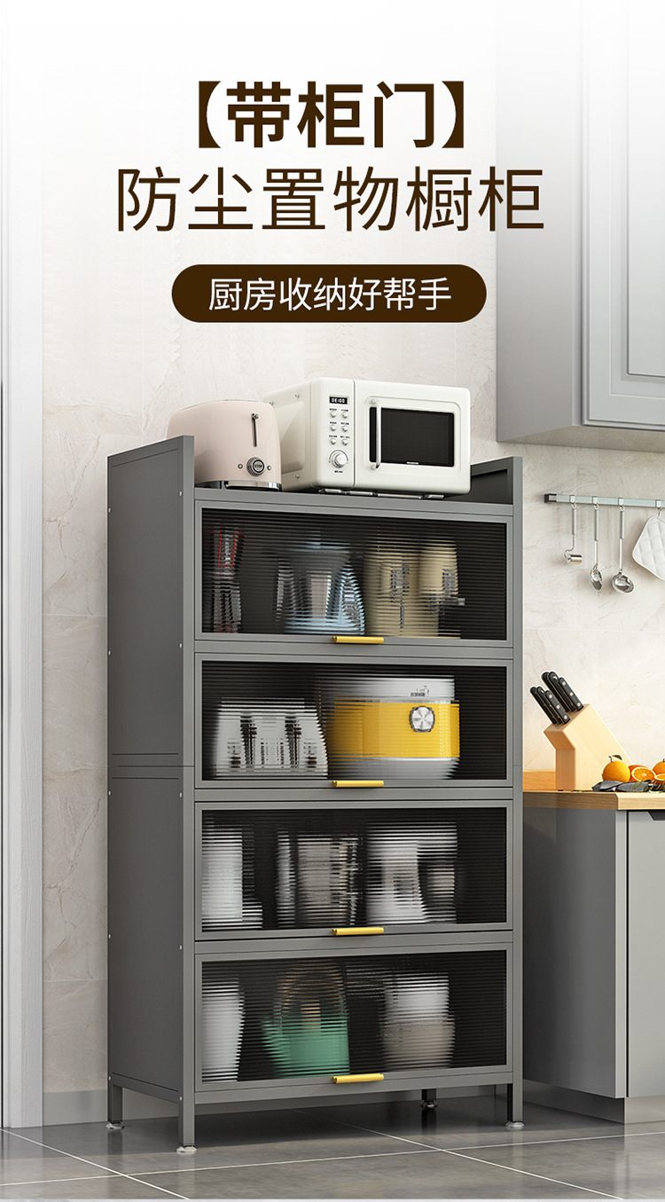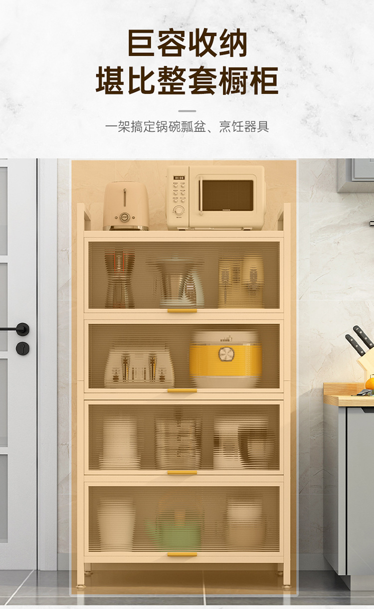 도어 플립 커버 주방 바닥형 다층 수납 랙 전자 레인지 방진 다기능 수납 캐비닛