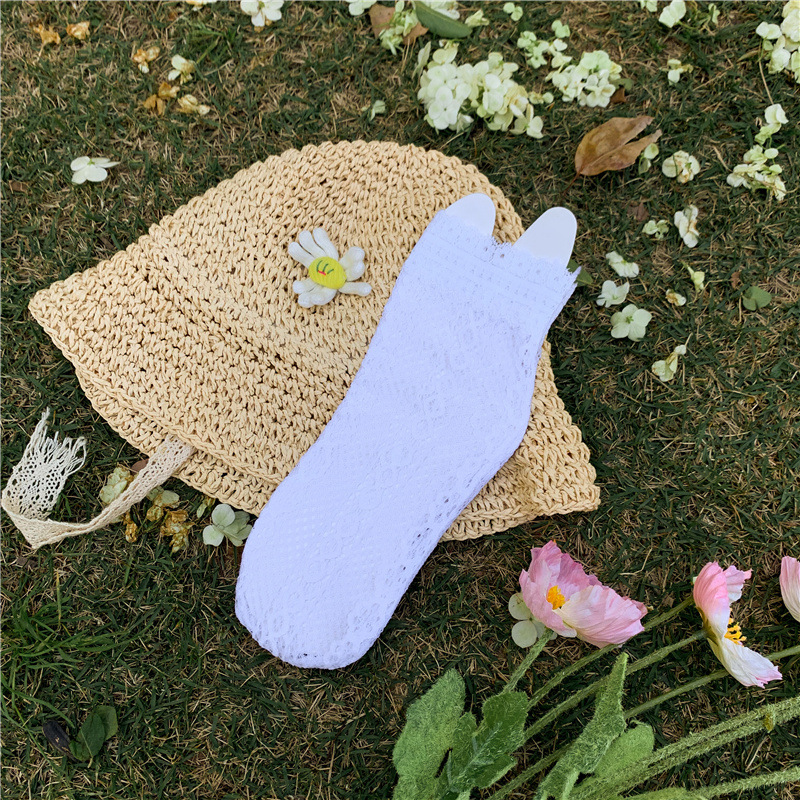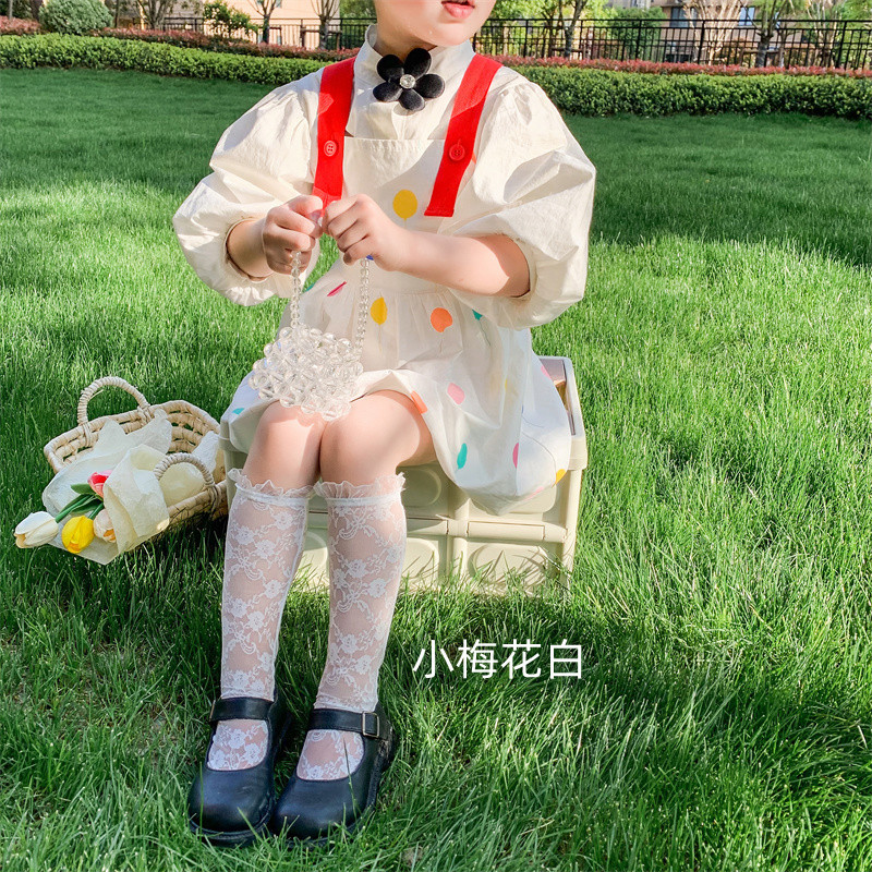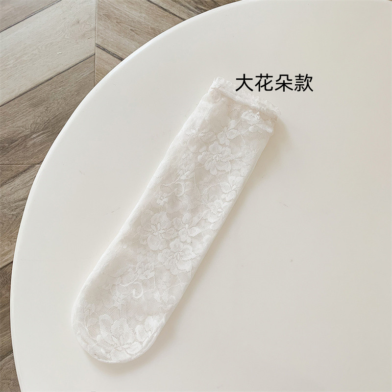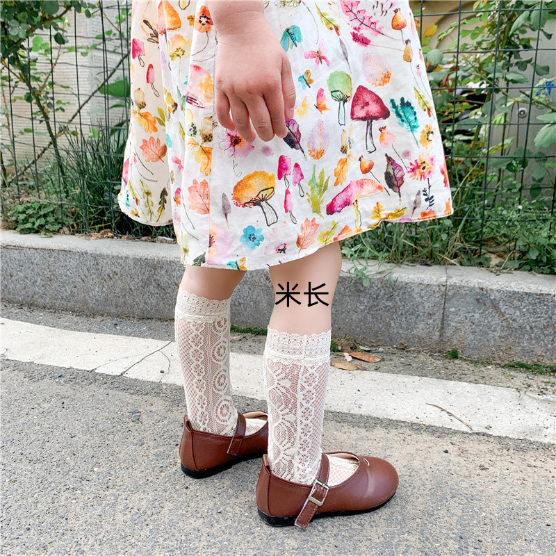 어린이 양말 초박형 한국식 여아 스위트 레이스 미드 튜브 양말 중공 메쉬 통기성 모기 방지 에어컨 양말스토어 가기