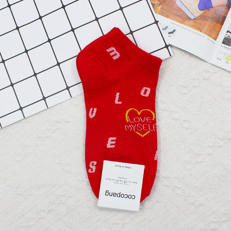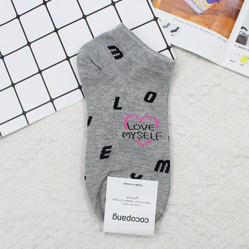 한국 동대문 2022 봄과 여름 새로운 전체 인쇄 개인 편지 사랑 한국 여성의 짧은 양말