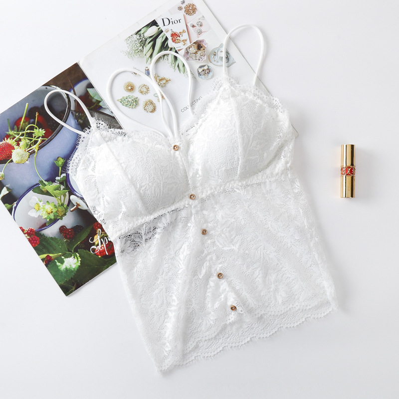 레이스 캐미솔 여성용 5 버튼 쇄골 중간 길이 아름다운 등 미끄럼 방지 오프 숄더 가을과 여름 유행베이스 얇은