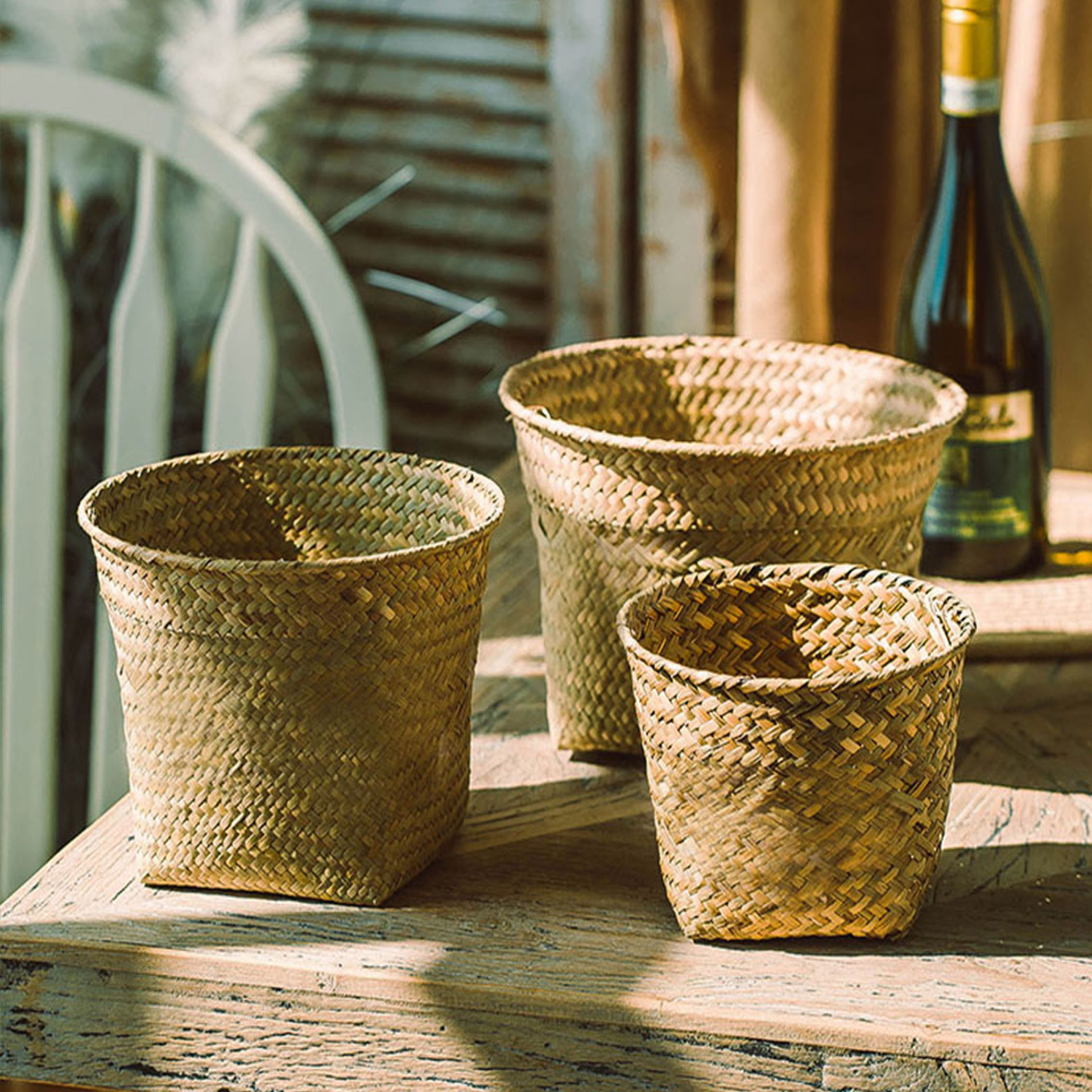 천연 짚 식물 꽃 바구니 화분 꽃꽂이 버드 나무 등나무 즙이 많은 가짜 꽃 바구니 꽃 도자기 꽃 원예 도매스토어 가기