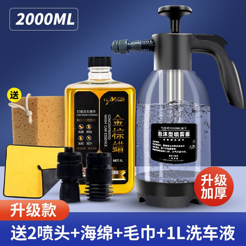 注:泡沫壶壶体有刻度线,加水不能超1.5L,洗车液和水比列1:50,气泡效果更佳。