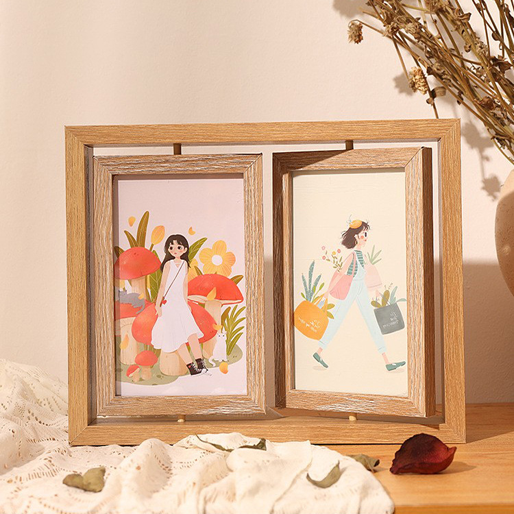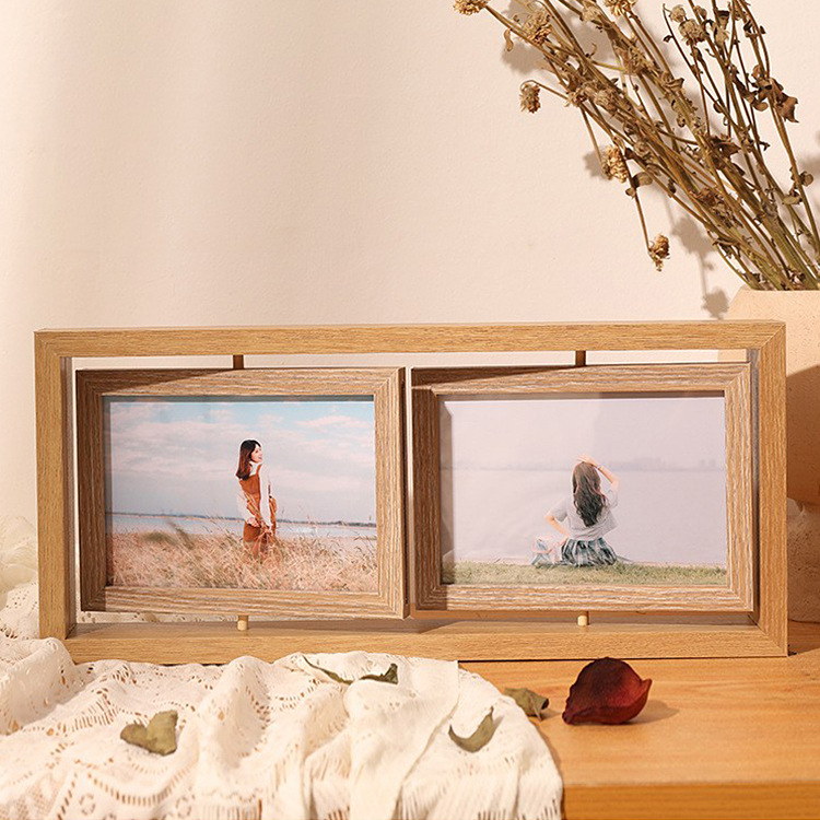 공장 도매 창조적 인 양면 회전 사진 프레임 테이블 세척 사진 6 7 8 인치 나무 사진 프레임스토어 가기