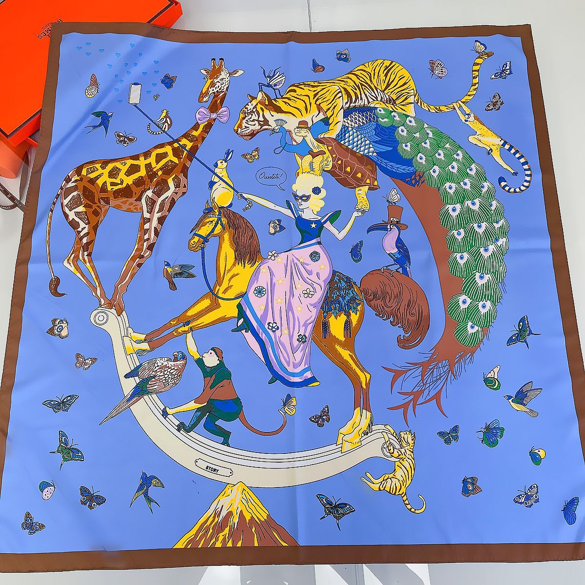 여름 새로운 90 트릴 대형 스퀘어 스카프 동물 실크 스카프 2022 모든 매치 여성용 빈티지 흑백 장식 머리 스카프스토어 가기
