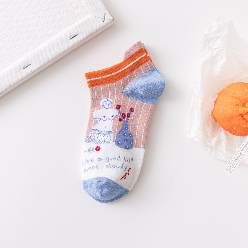 양말 여성 제조 업체 도매 숙녀 만화 보이지 않는 보트 양말 봄과 여름 새로운 모든 일치 조수 양말 여성 얕은 양말스토어 가기