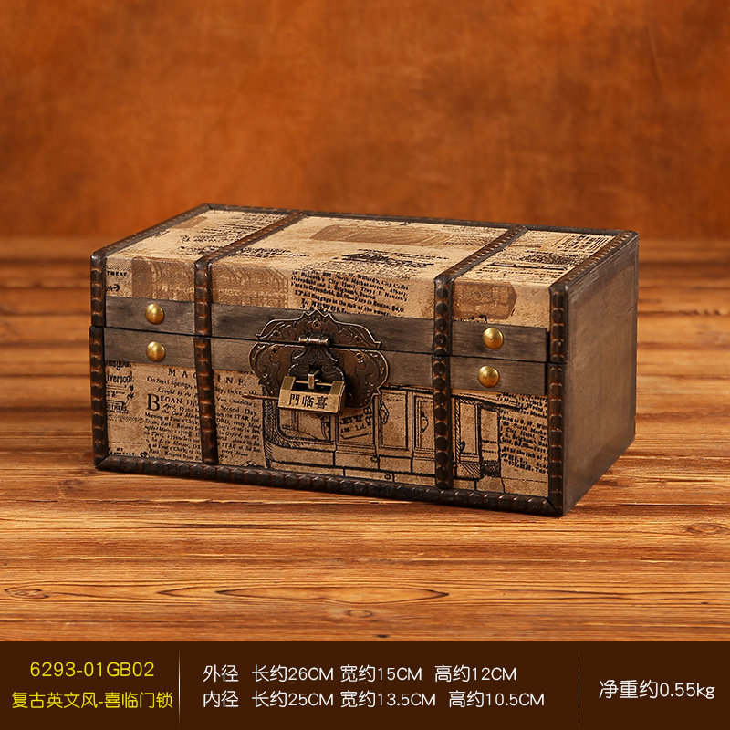 외국 무역 새로운 복고풍 영국 스타일 보석 상자 잠금 데스크탑 보관 상자 보석 포장 상자 나무 상자 보물 상자스토어 가기