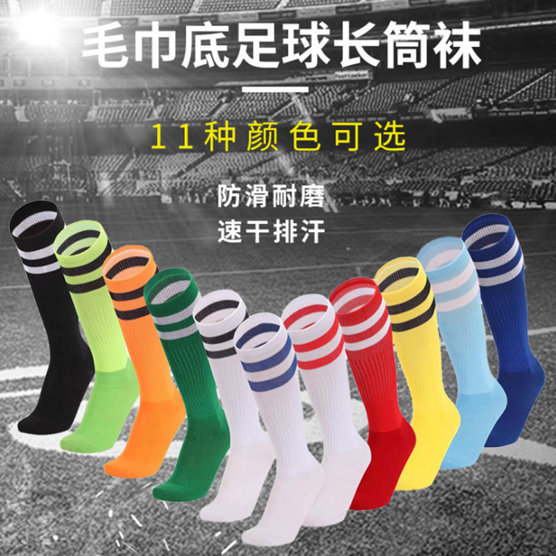 毛巾男士运动袜成人比赛训练防滑足球袜长筒儿童学生两杠休闲袜子