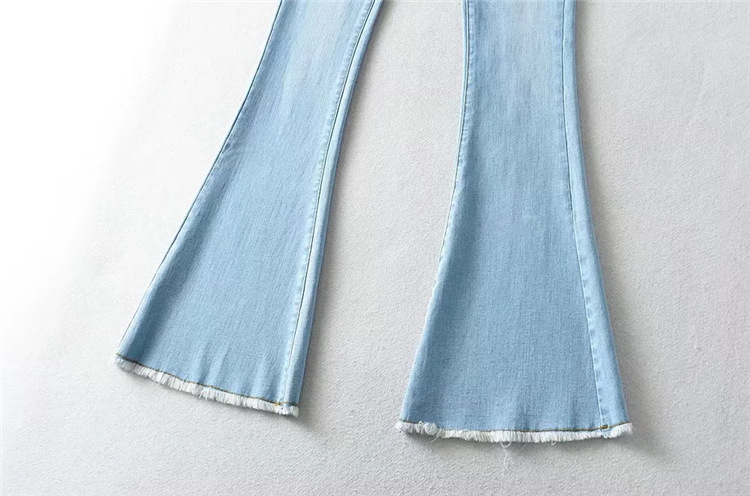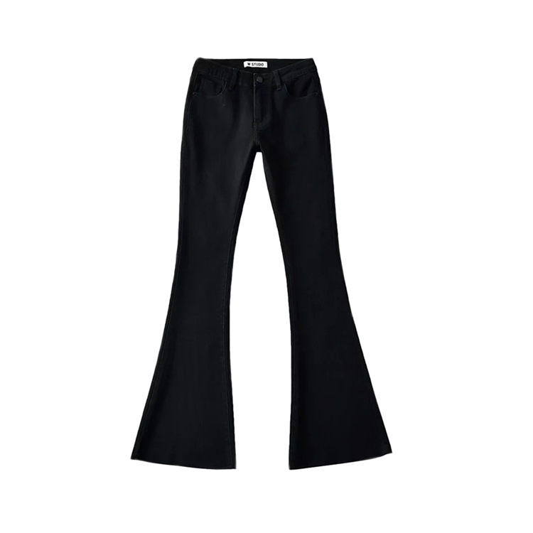 틈새 복고풍 슬림 핏 슬림 다리 바지 봄 뜨거운 소녀 낮은 허리 배꼽 데님 마이크로 플레어 바지 여성용스토어 가기