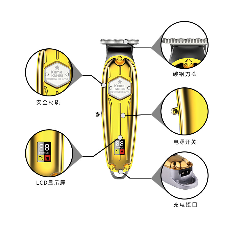 Kemei/Kemei 금속 바디 충전식 헤어 클리퍼 KM-I5S LCD 디지털 디스플레이 헤어 클리퍼 전기 클리퍼스토어 가기