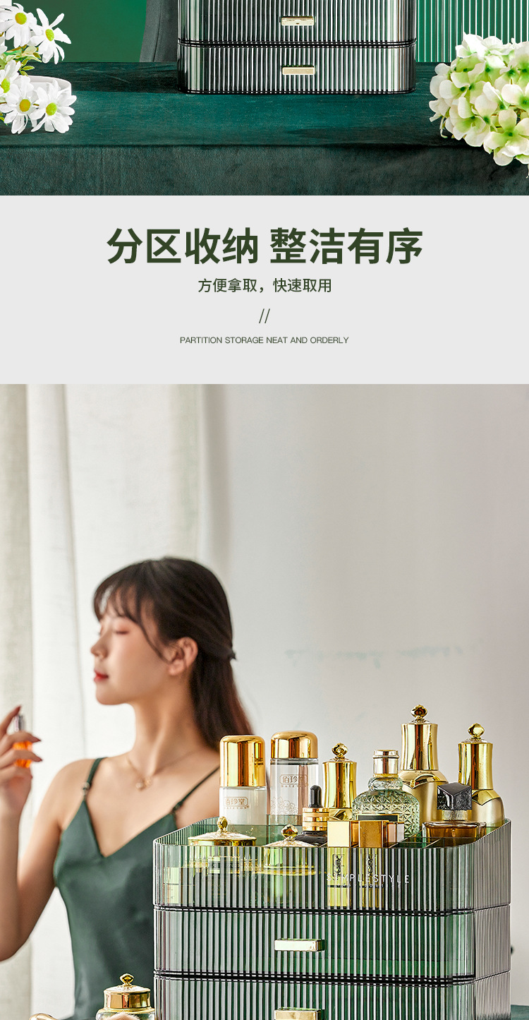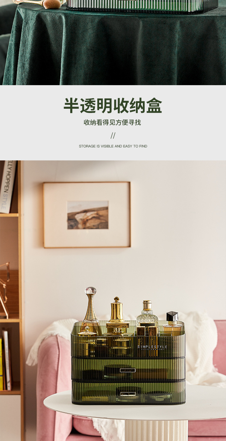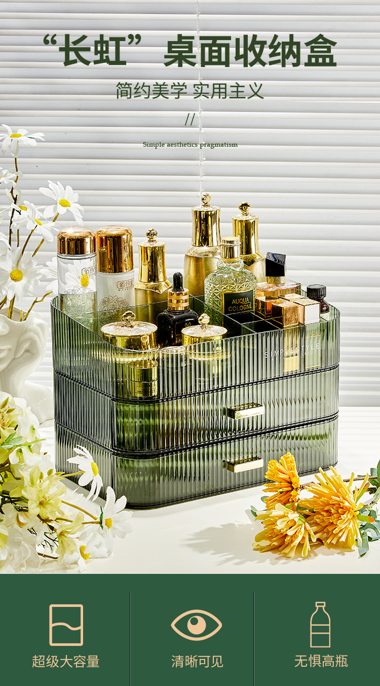 抽屉款化妆品桌面整理收纳盒口红面膜置物架多格储物盒彩妆收纳筐