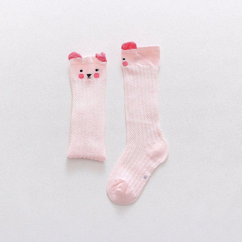 여름 아기 양말 유아면 얇은 모기 방지 양말 메쉬 무릎 위 동물 양말