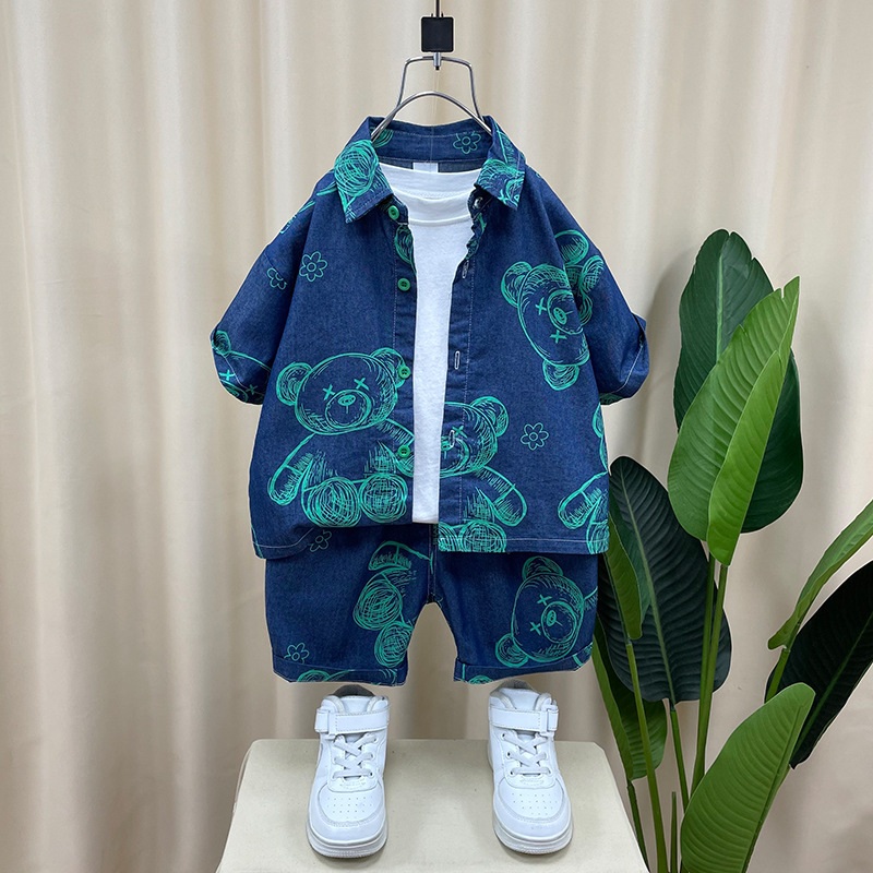남아 여름 데님 반팔 셔츠 세트 2025 신상 어린이 여름 의류 트렌디하고 멋진 옷 남자아이용스토어 가기