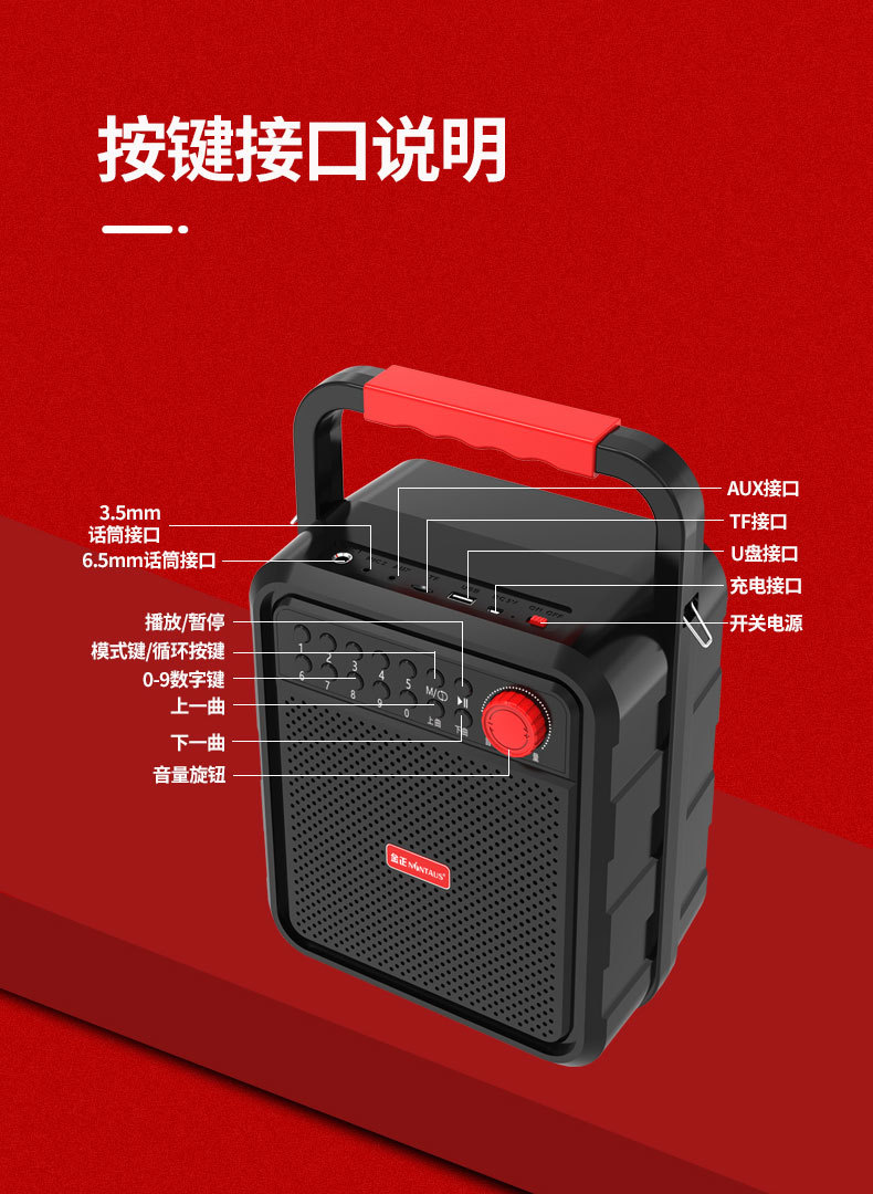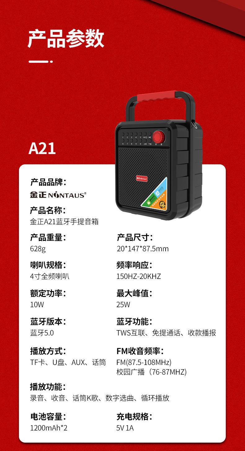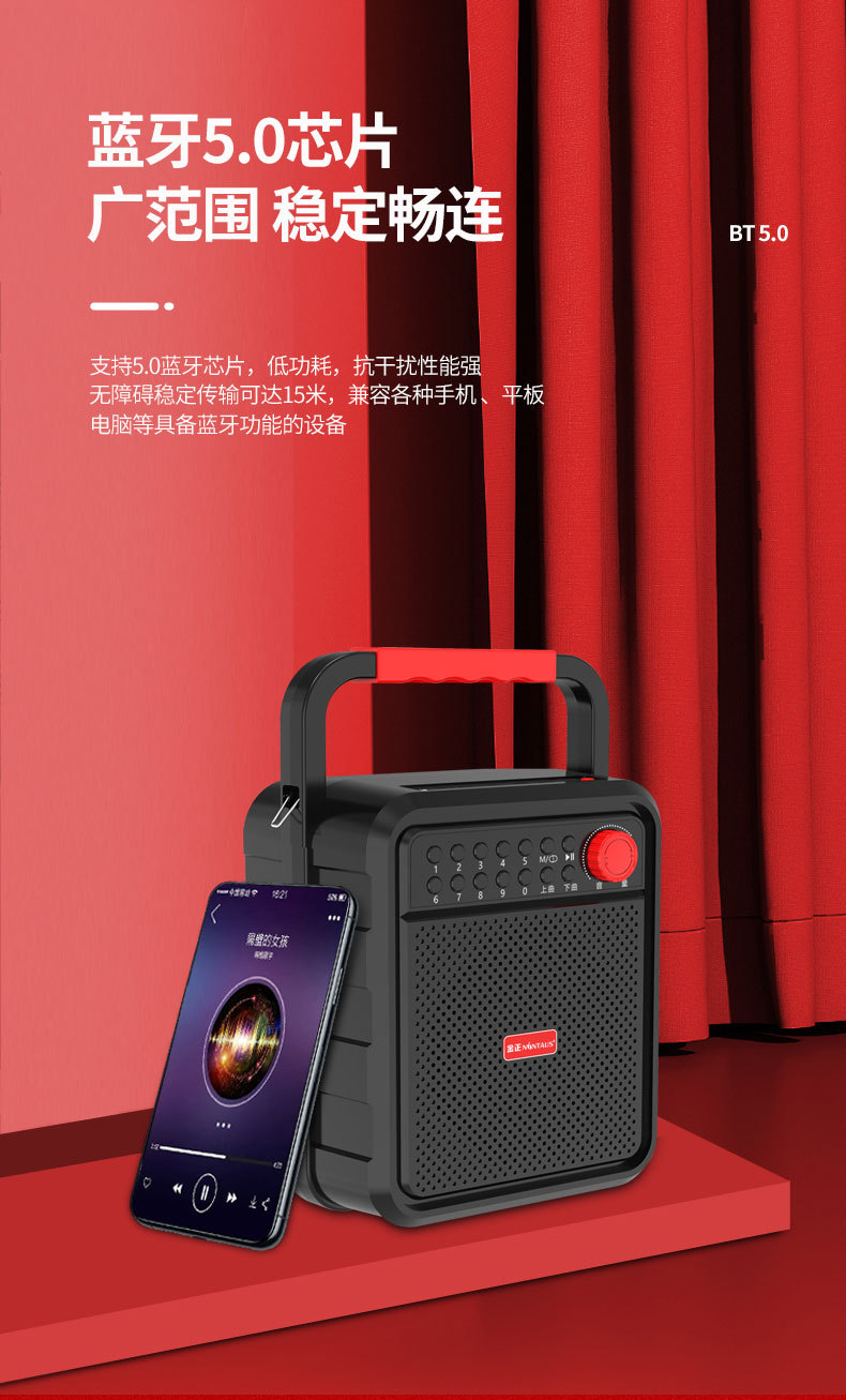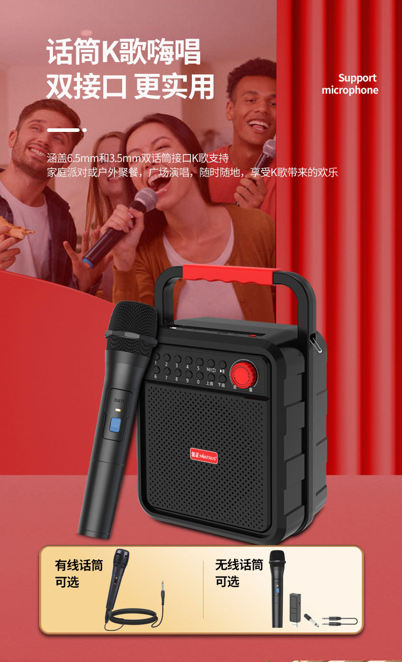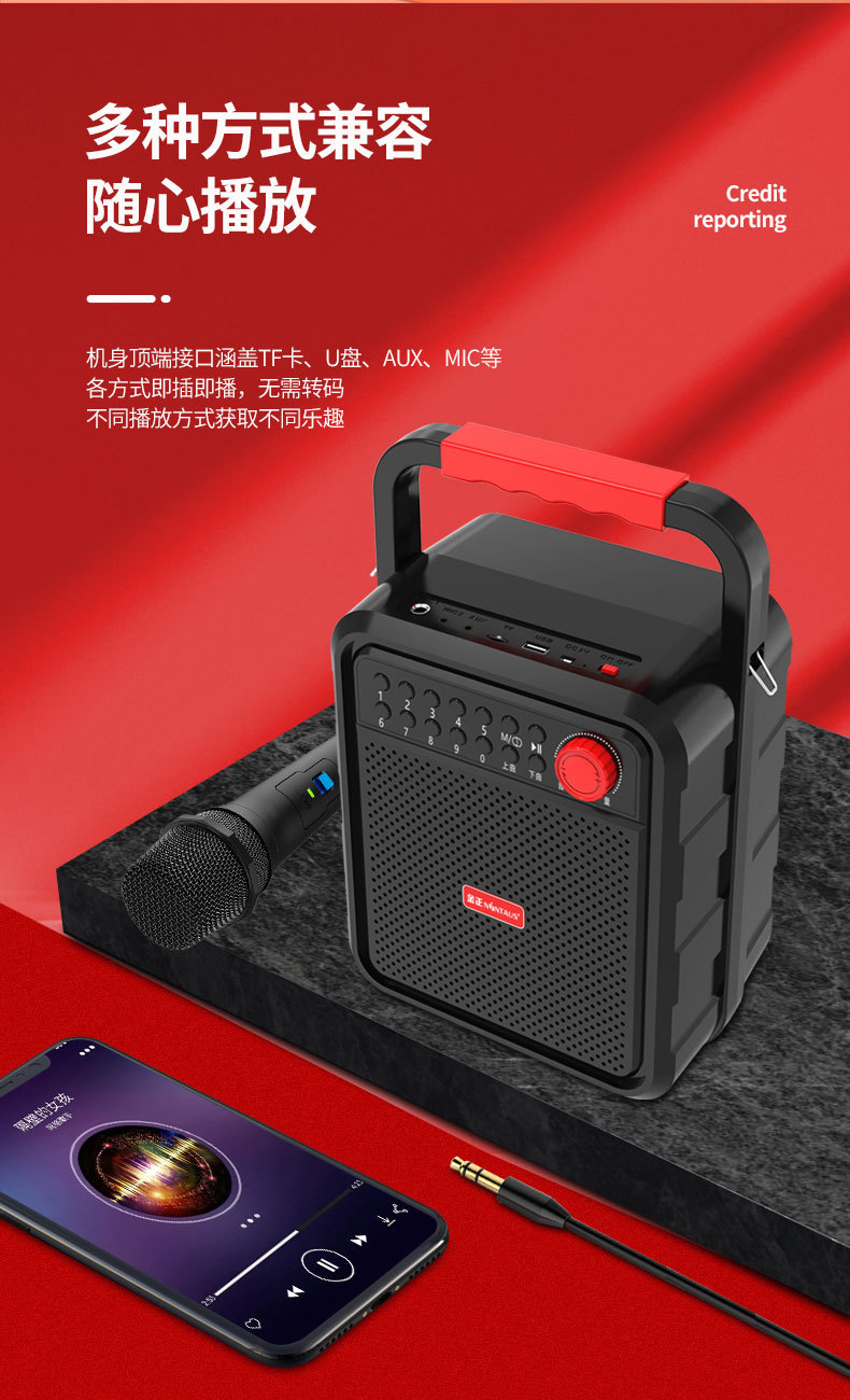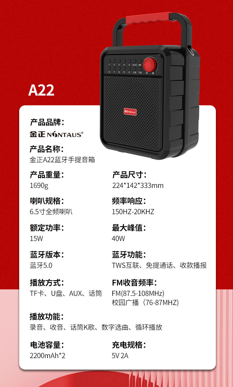 김종 A22 휴대용 블루투스 스퀘어 댄스 오디오 휴대용 미니 휴대용 스피커 야외 서브 우퍼