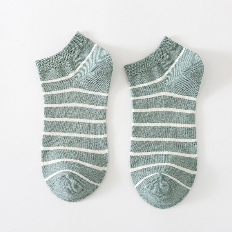 봄과 여름 새로운 모든 경기 얕은 양말 면 양말 여성용 신선한 줄무늬 녹색 격자 무늬 대학 스타일 여성용 보트 양말스토어 가기