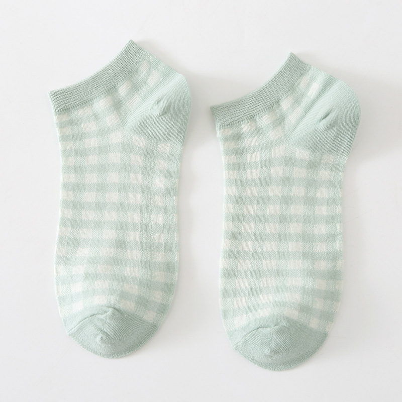 봄과 여름 새로운 모든 경기 얕은 양말 면 양말 여성용 신선한 줄무늬 녹색 격자 무늬 대학 스타일 여성용 보트 양말