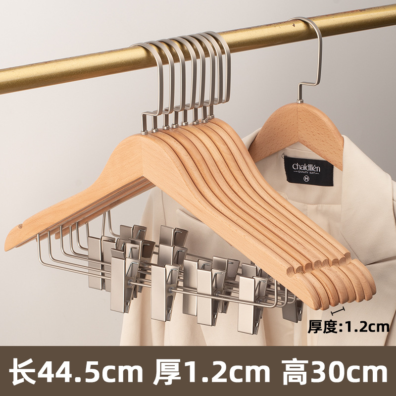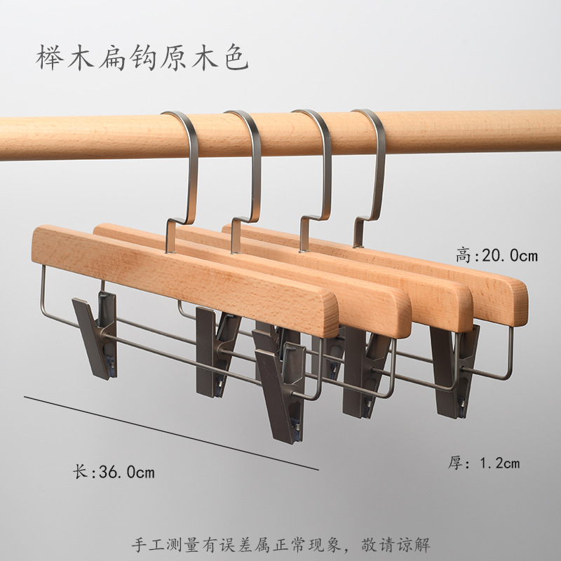 • 클립이 달린 고급 너도밤나무 천연색 바지걸이