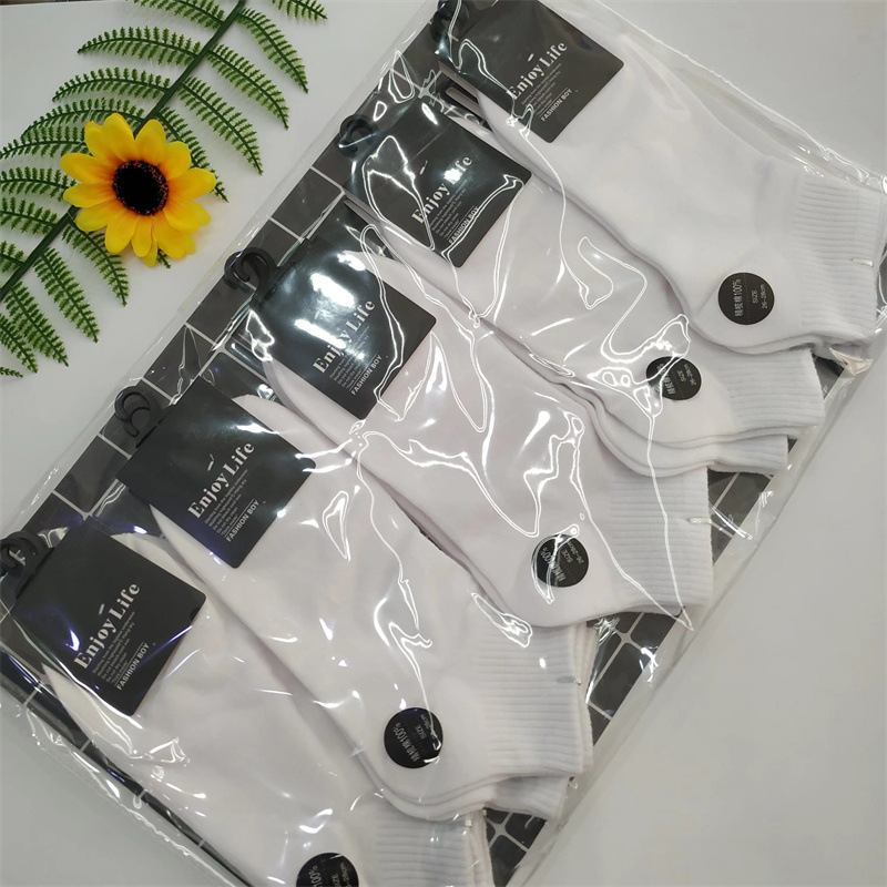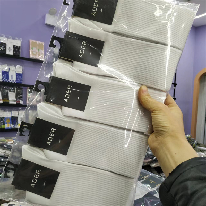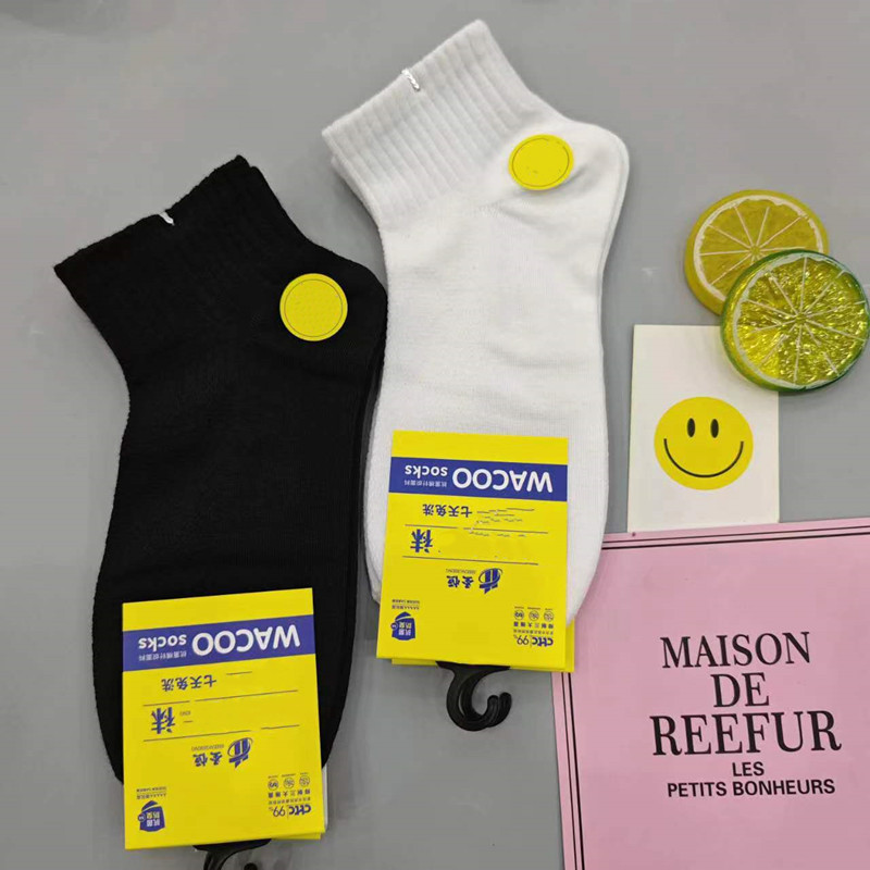 남성과 여성의 흑백 플랫 보트 양말 고무 밴드 입 긴 튜브 학술 스타일 스포츠 레저 면화 양말 양말 양말 도매스토어 가기