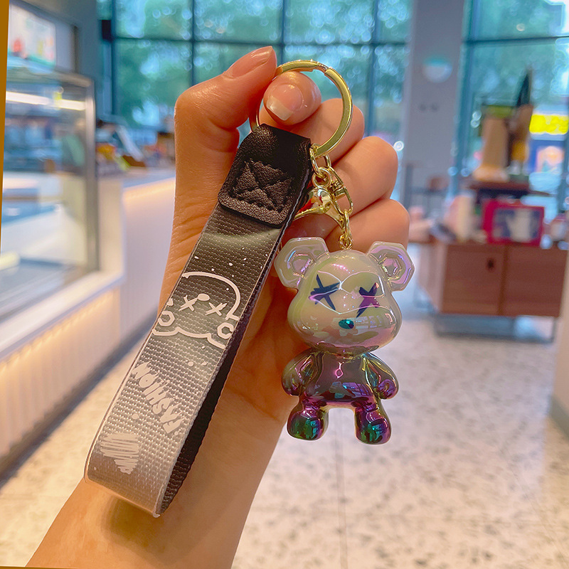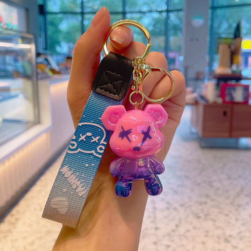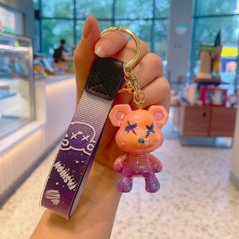 그라디언트 도금 낙서 곰 열쇠 고리 귀여운 가방 펜던트 열쇠 고리 창조적 인 보석 자동차 수지 열쇠 고리스토어 가기