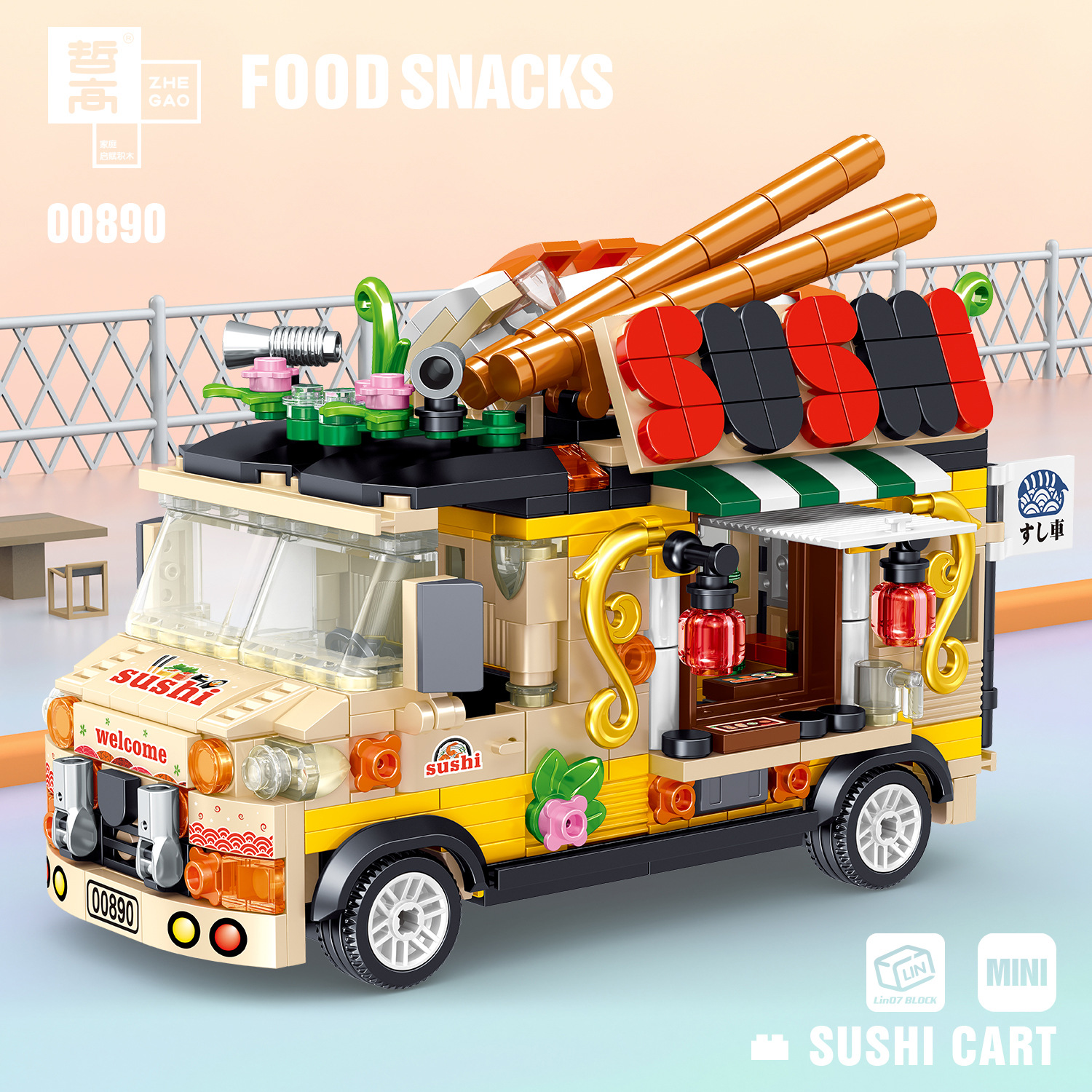 Zhegao 스트리트 뷰 블록 함부르크 아이스크림 자동차 장식품 소녀 작은 입자 조립 퍼즐 블록 레고 호환스토어 가기