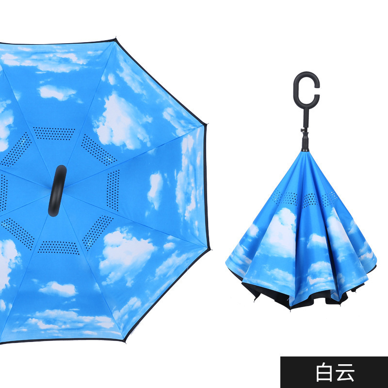 C 형 핸들 일자 막대 우산 강화 폭풍 방지 자동차 운반 우산 확대 이중 긴 손잡이 우산 양지 바른 비 오는 2 층 역 우산스토어 가기