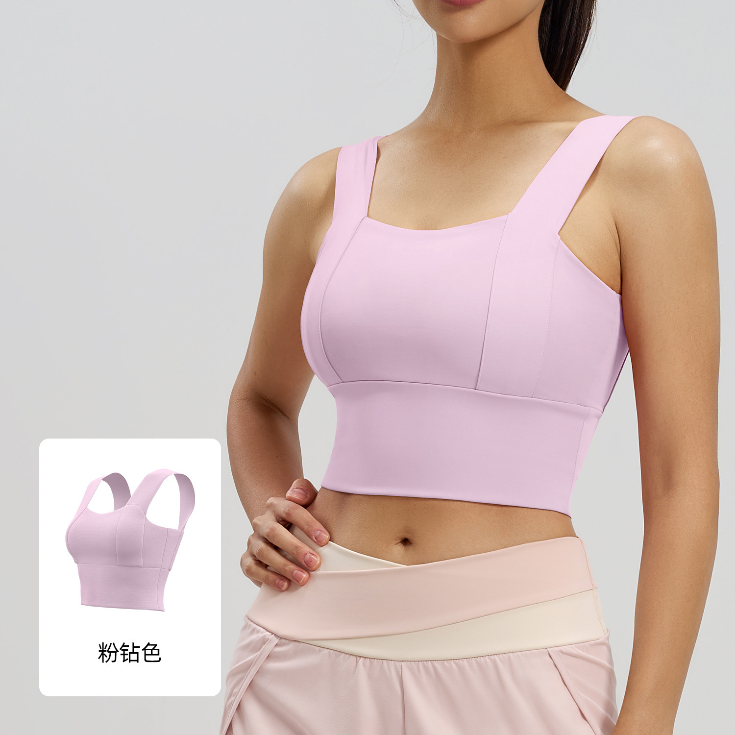 국경을 넘어 인기 있는 넓은 어깨끈 스포츠 브라, 일체형 고정형 패드, 고강도 요가 조끼, 여성용 고탄력 브라스토어 가기