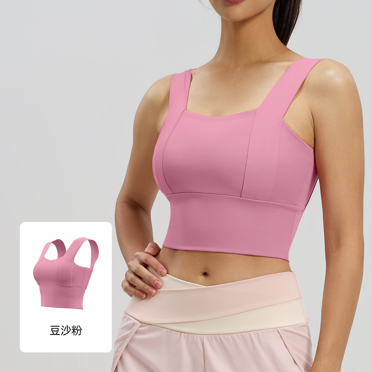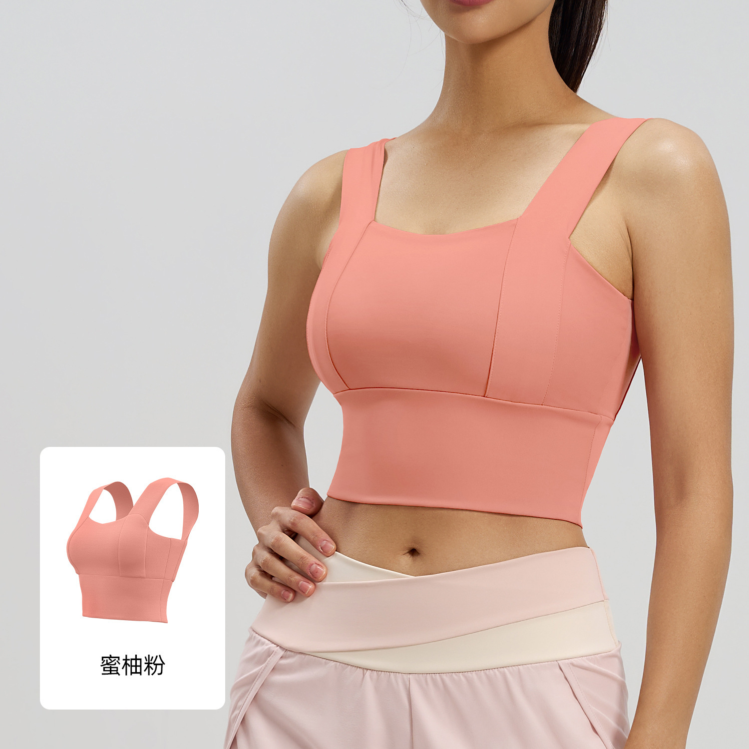 국경을 넘어 인기 있는 넓은 어깨끈 스포츠 브라, 일체형 고정형 패드, 고강도 요가 조끼, 여성용 고탄력 브라