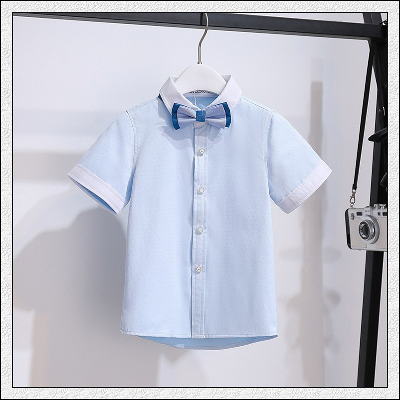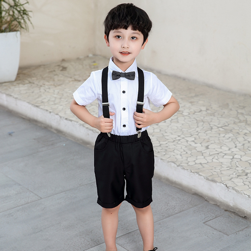 여름 새 아동복 남아 공연 의류 면 반팔 흰색 셔츠 아기 여름 셔츠 단색 반 소매 탑스토어 가기