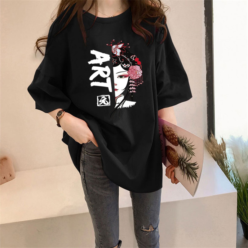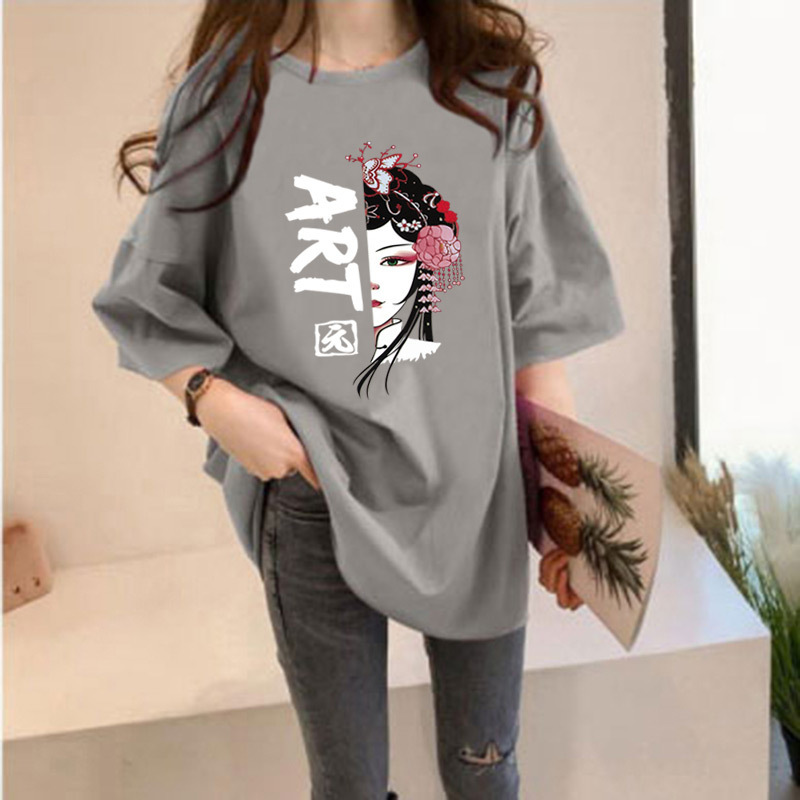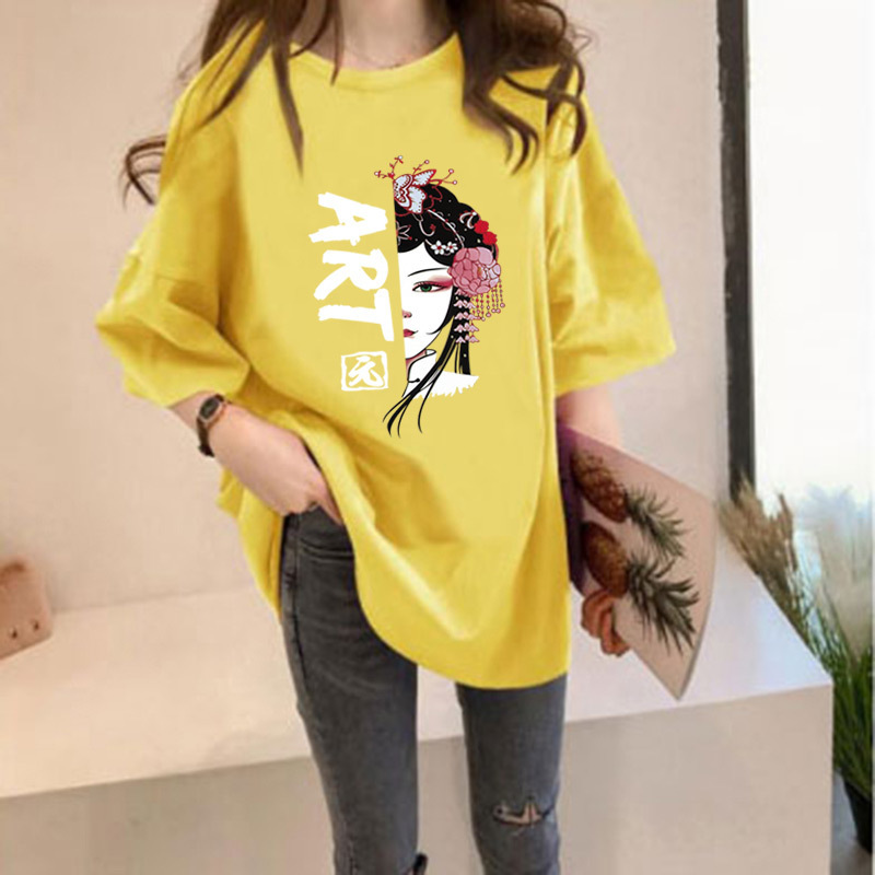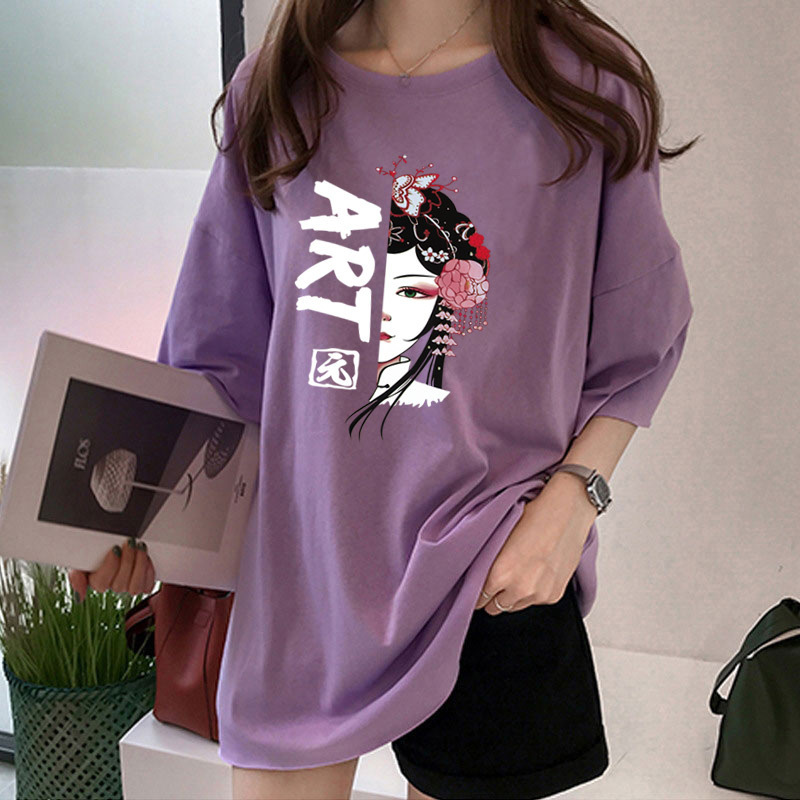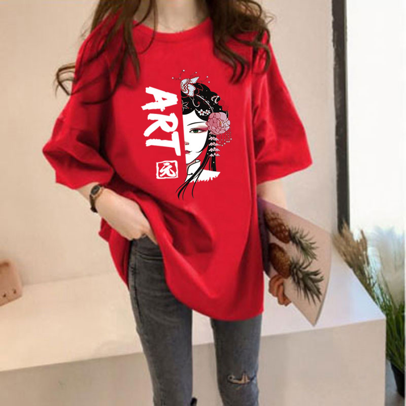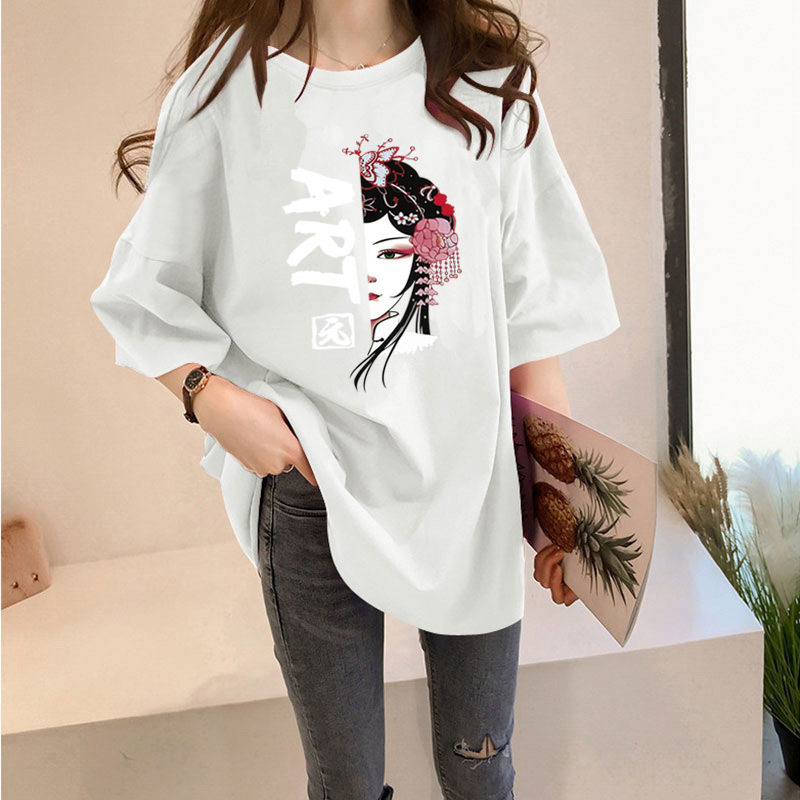 여름 중국풍 페이스페인팅 반팔 티셔츠 여성용 2026 신상품 큰 사이즈 국민 트렌드 반팔 인싸템 인스타그램 탑 여성용 루즈핏