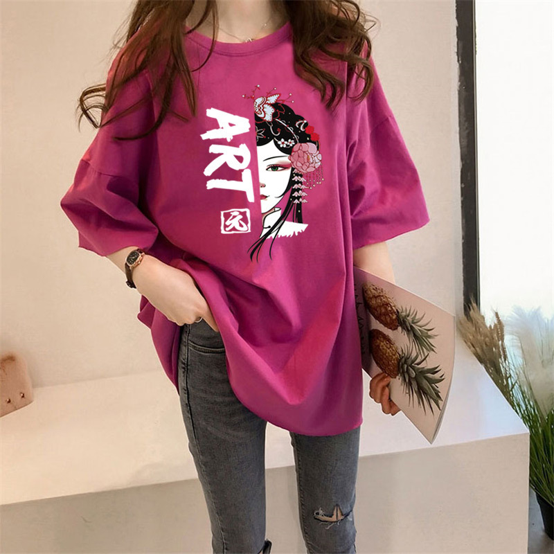 여름 중국풍 페이스페인팅 반팔 티셔츠 여성용 2026 신상품 큰 사이즈 국민 트렌드 반팔 인싸템 인스타그램 탑 여성용 루즈핏스토어 가기