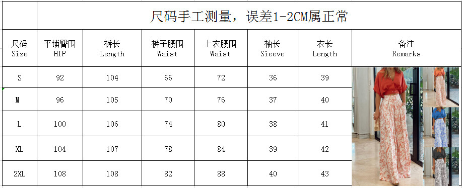 2022 아마존 크로스 보더 유럽과 미국 패션 V-넥 짧은 탑 셔츠 세트 인쇄 통근 와이드 레그 팬츠 여성복스토어 가기