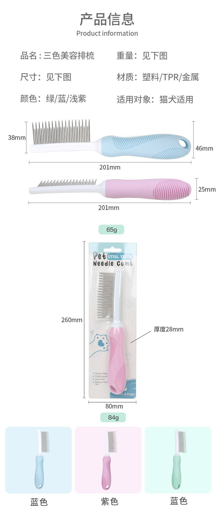애완 동물 빗 고양이 아름다움 행 빗 개 벼룩 빗 고양이 오픈 매듭 머리 제거 고양이 빗 애완 동물 용품