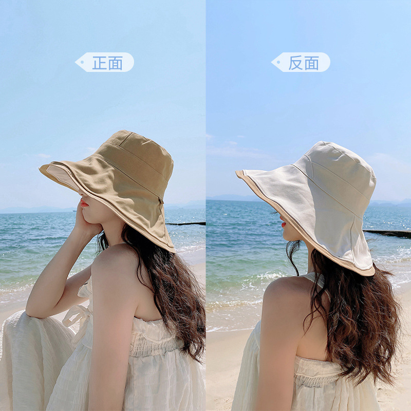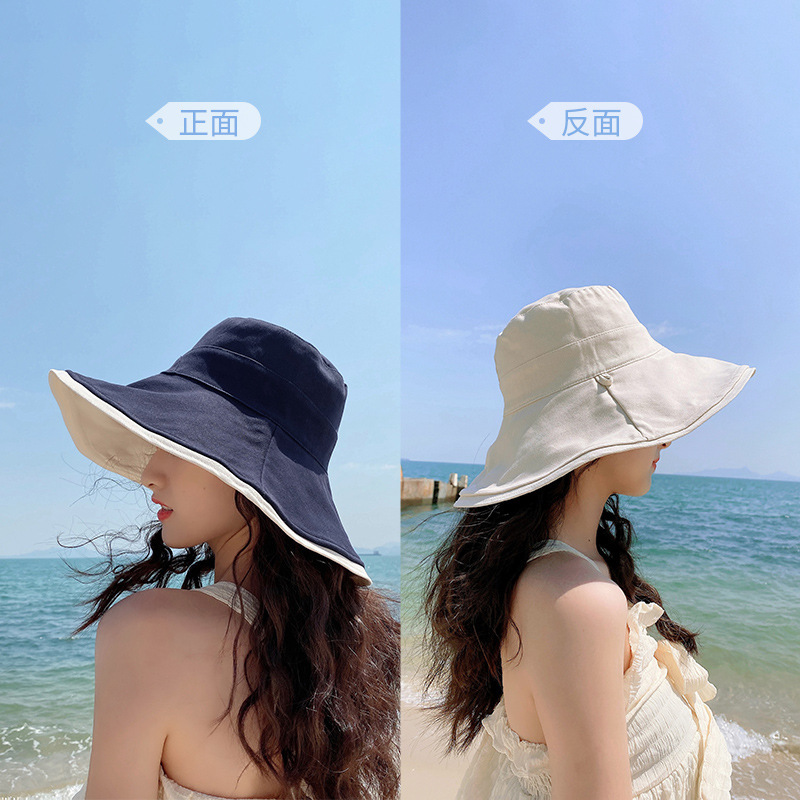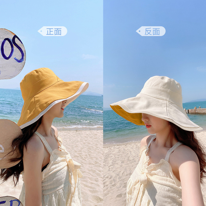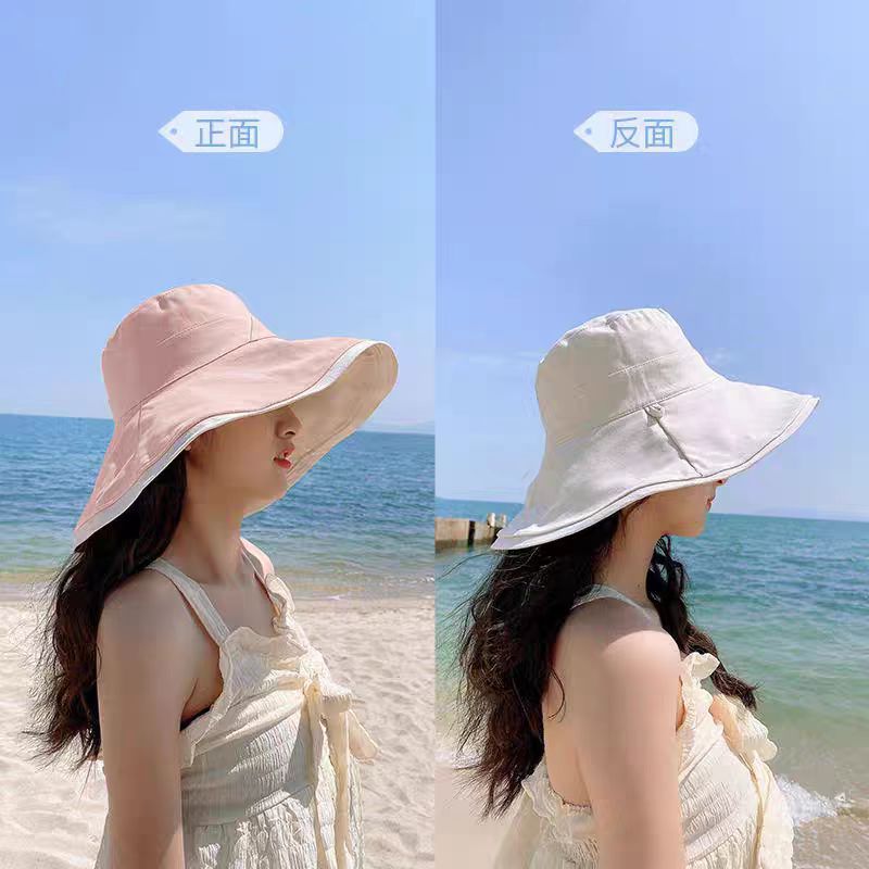 어부의 모자 여성용 한국식 인터넷 연예인 양면 차양 자외선 차단제 챙이 큰 모자 작은 여름 태양 모자를 보여주는 모든 경기 슬리밍 얼굴스토어 가기