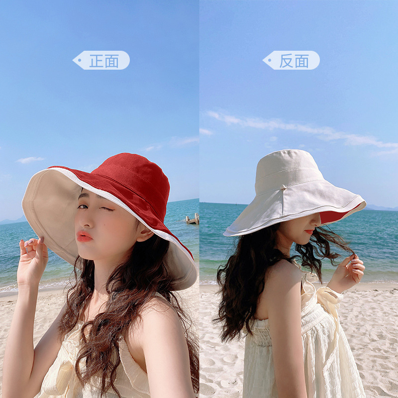 어부의 모자 여성용 한국식 인터넷 연예인 양면 차양 자외선 차단제 챙이 큰 모자 작은 여름 태양 모자를 보여주는 모든 경기 슬리밍 얼굴