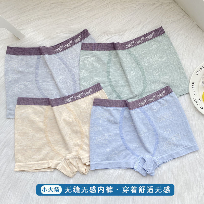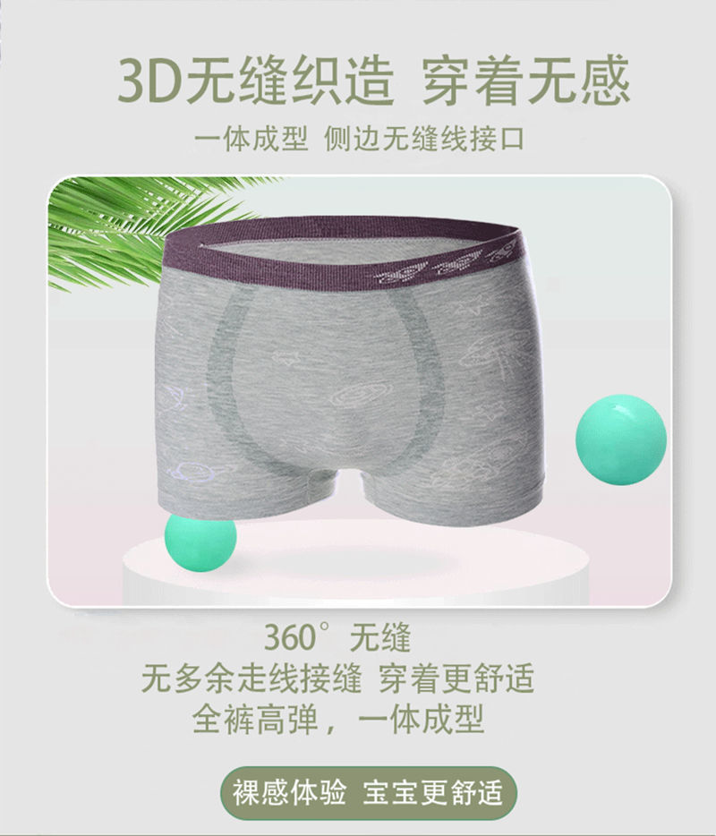 跨境直播无缝少男儿童内裤纯彩棉莫代尔小中大童男孩平角短内裤 RMB:4.99