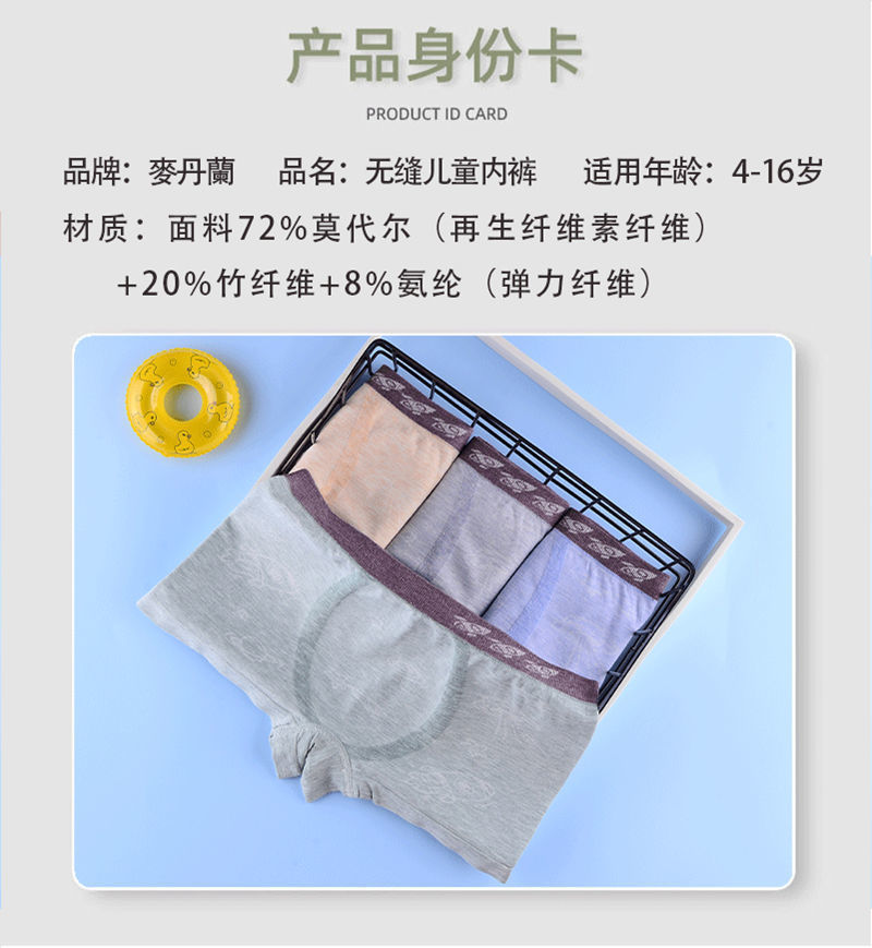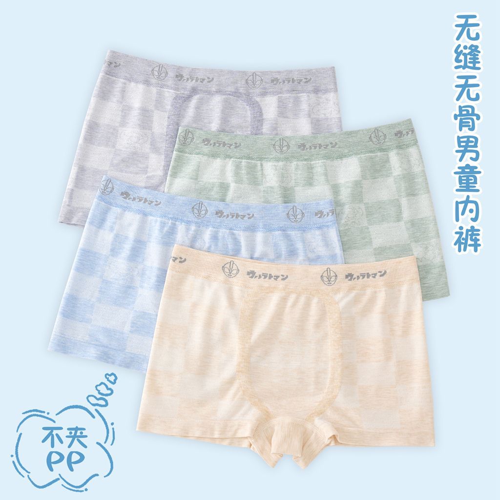 跨境盒装无缝纯色棉中大儿童平角裤男莫代尔平角裤小男孩童装内裤 RMB:6.79