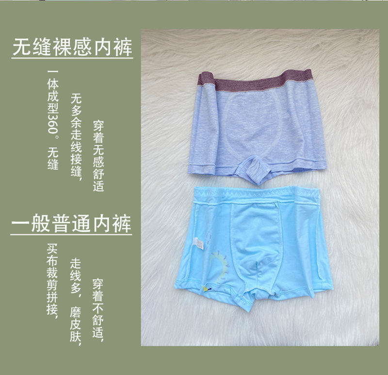 跨境一片式无缝无痕无感艾草抗菌大码平角裤男裸感莫代尔男士内裤 RMB:10.99