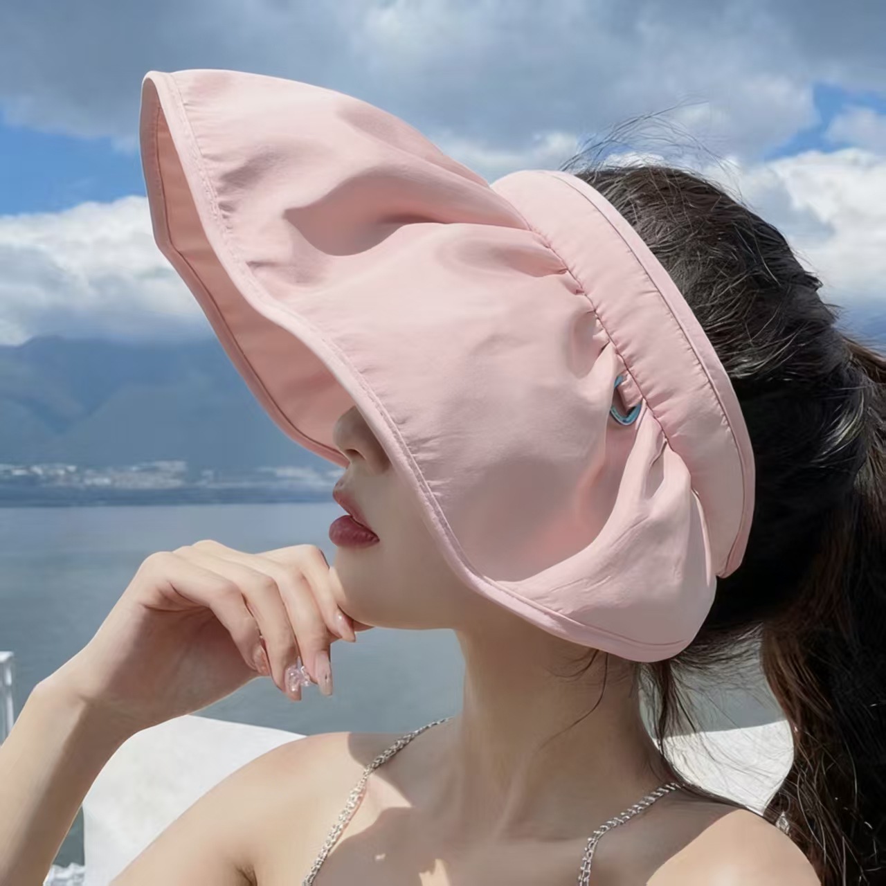 여름 여성용 비닐 태양 모자, 조절 가능한 머리띠, 야외 자외선 차단제, 빈 탑 인터넷 연예인 태양 모자