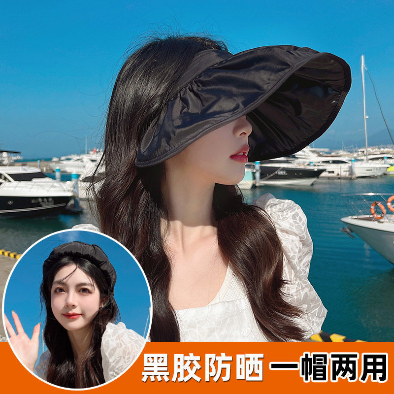 여름 여성용 비닐 태양 모자, 조절 가능한 머리띠, 야외 자외선 차단제, 빈 탑 인터넷 연예인 태양 모자스토어 가기
