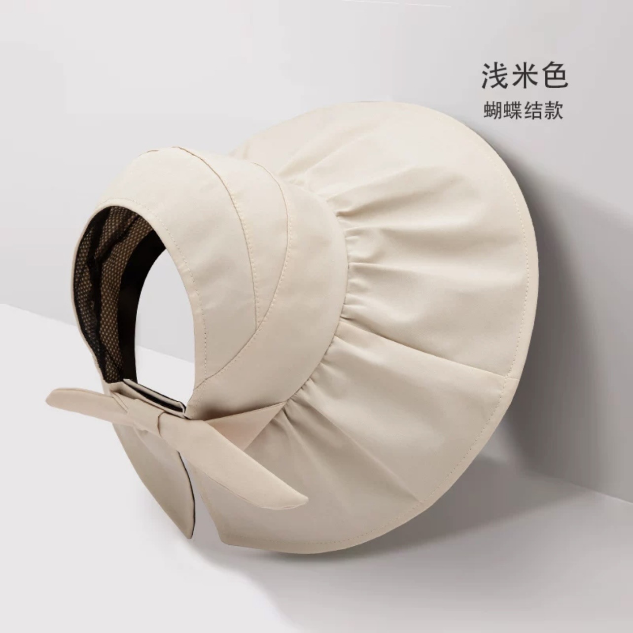 • 작은 활 태양 모자 베이지 + 방풍 로프