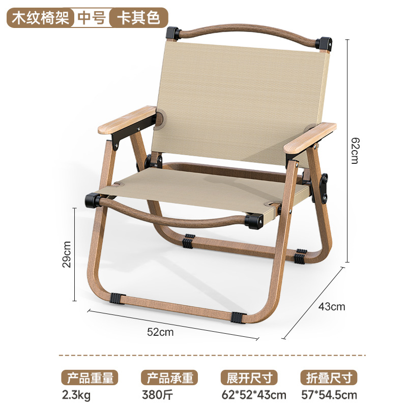• [알루미늄 합금 우드 그레인 의자 프레임] 중형 카키-너도밤나무 팔걸이