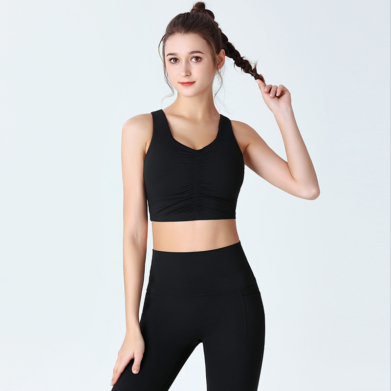 국경을 넘는 신상 요가 브라, 푸쉬업, 고탄력, 충격방지, 러닝 스포츠 탱크탑, 주름, 섹시한 등라인 브라, 재고 있음
