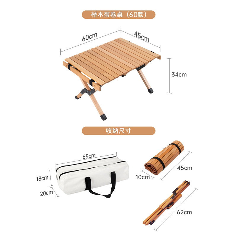 직판 휴대용 야외 너도밤나무 접이식 테이블 자율 주행 여행 테이블 캠핑 단단한 나무 달걀 롤 테이블 캠핑 피크닉 테이블