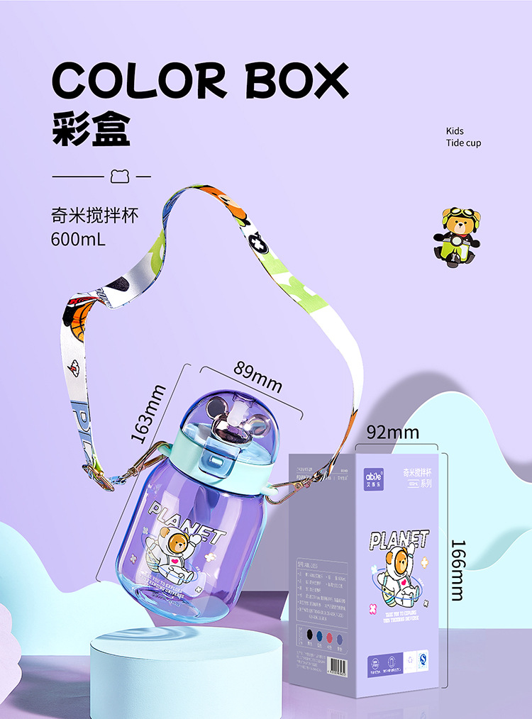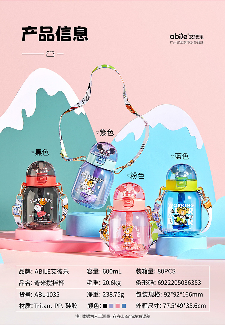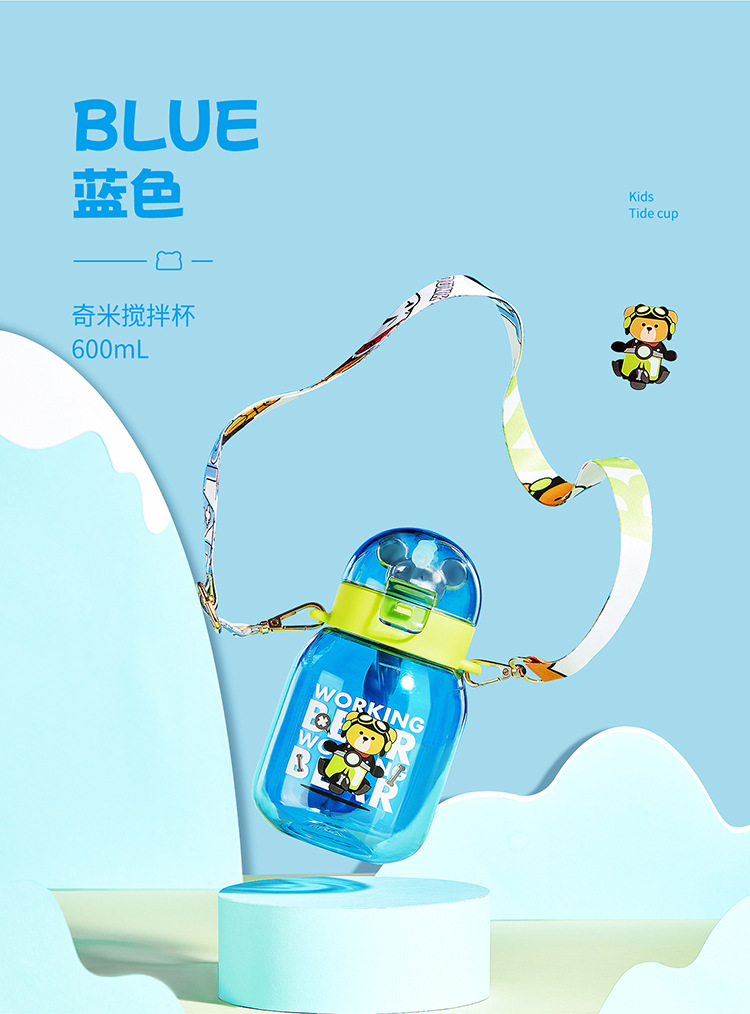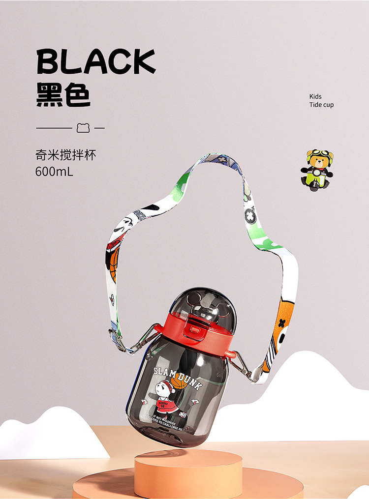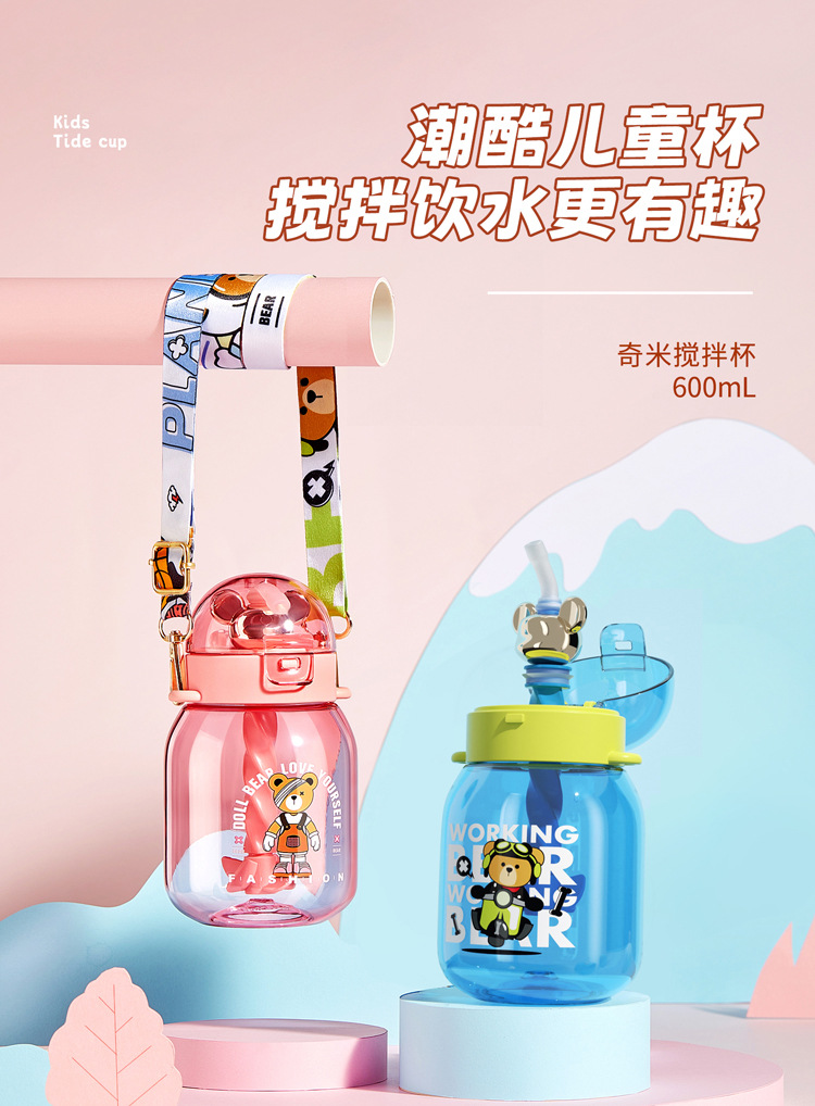 Qimi 믹싱 컵 Fuquan 어린이 물 컵 만화 플라스틱 컵 창조적 인 흡입 튜브 컵 높은 색상 값 회전 학생 컵