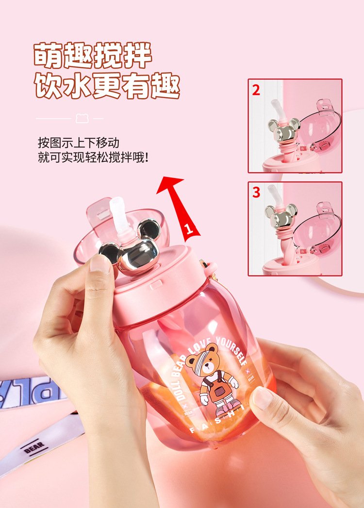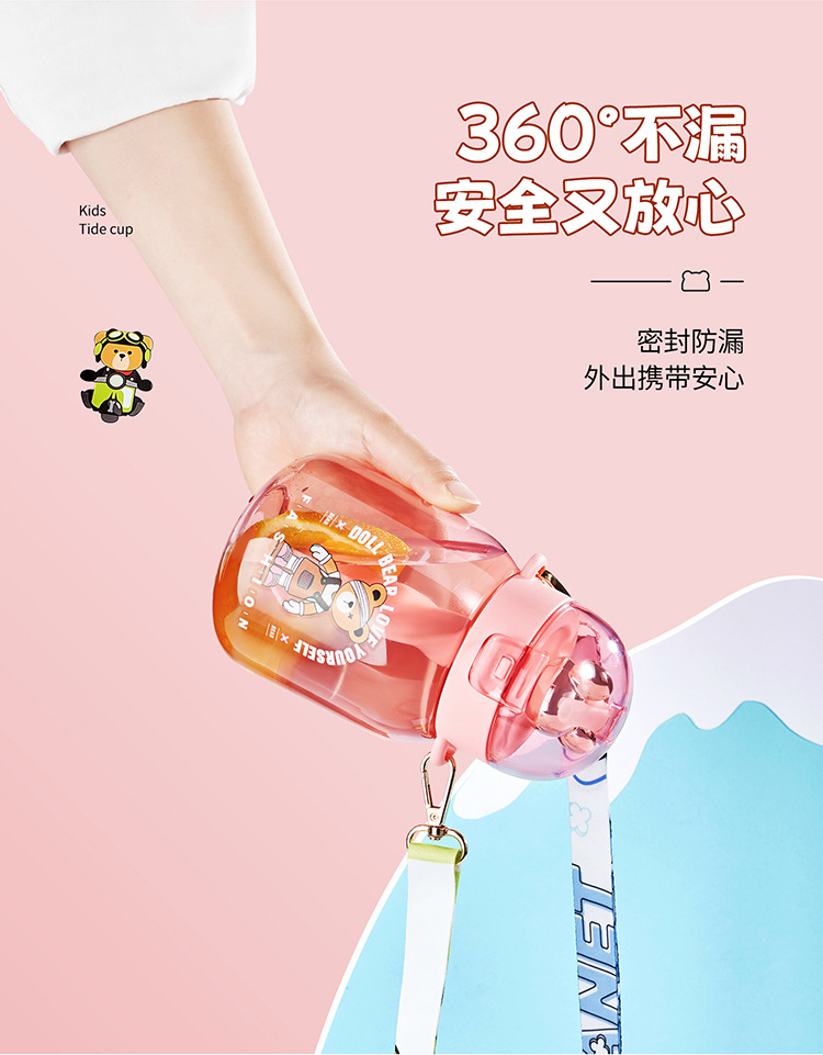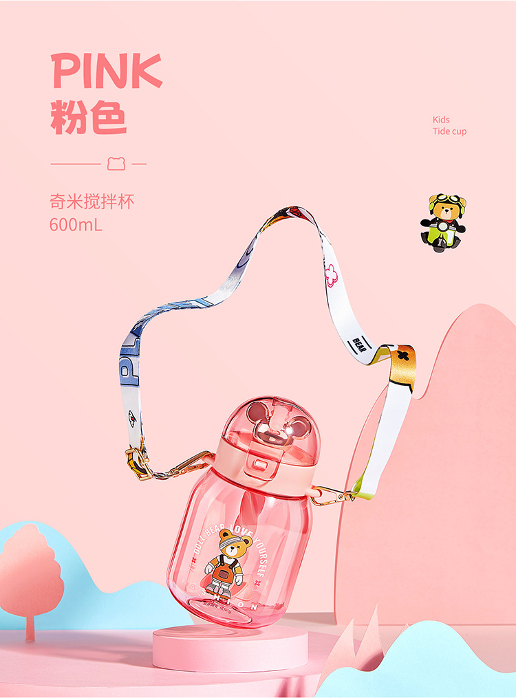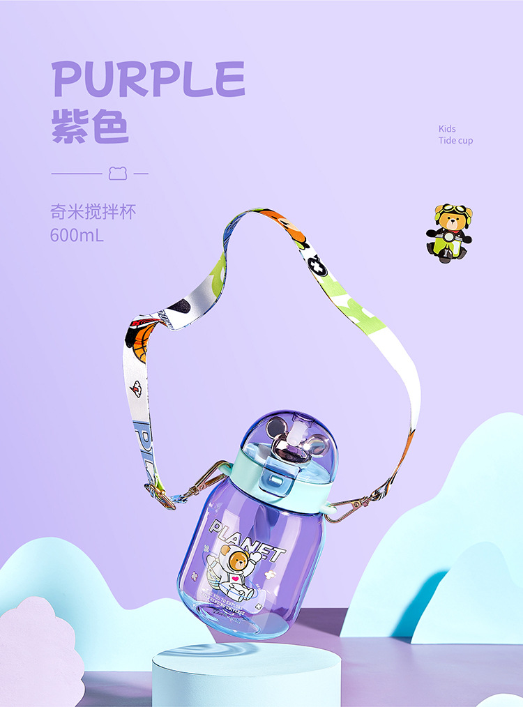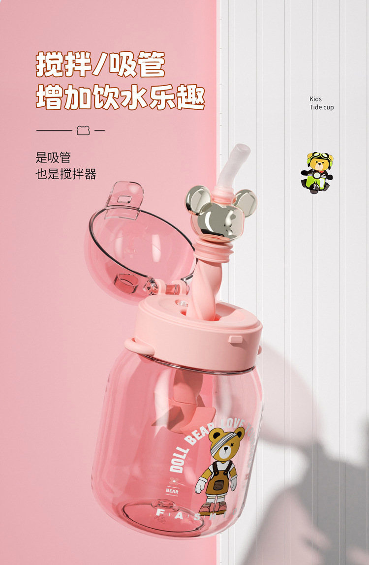 Qimi 믹싱 컵 Fuquan 어린이 물 컵 만화 플라스틱 컵 창조적 인 흡입 튜브 컵 높은 색상 값 회전 학생 컵