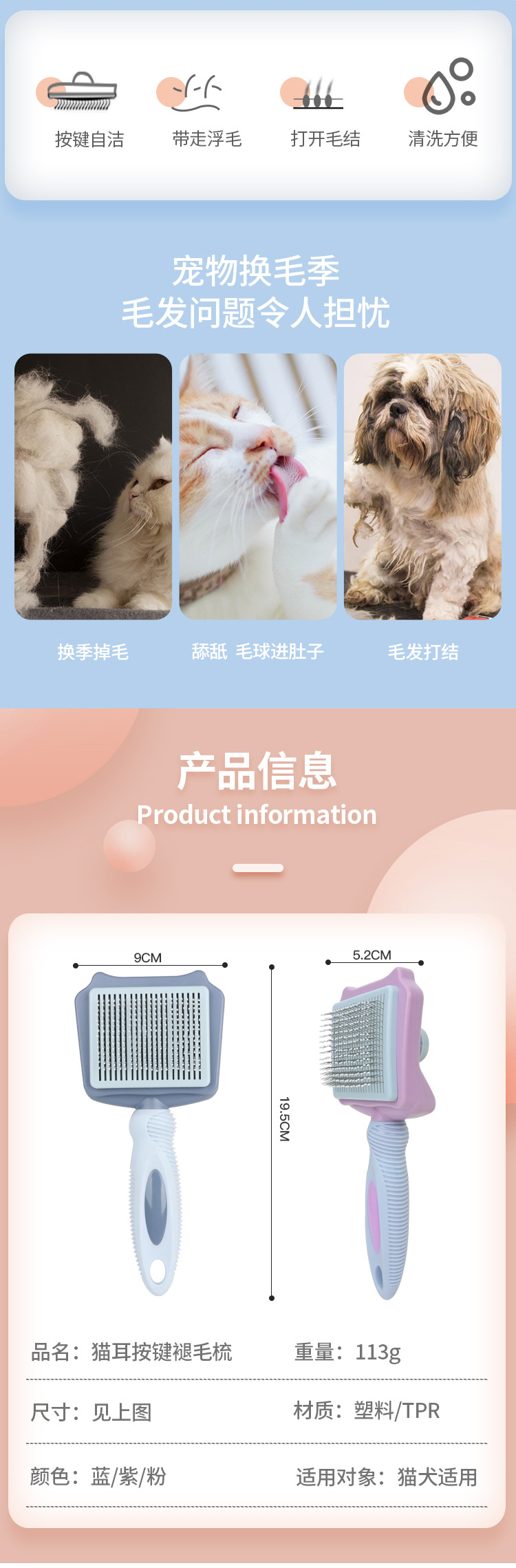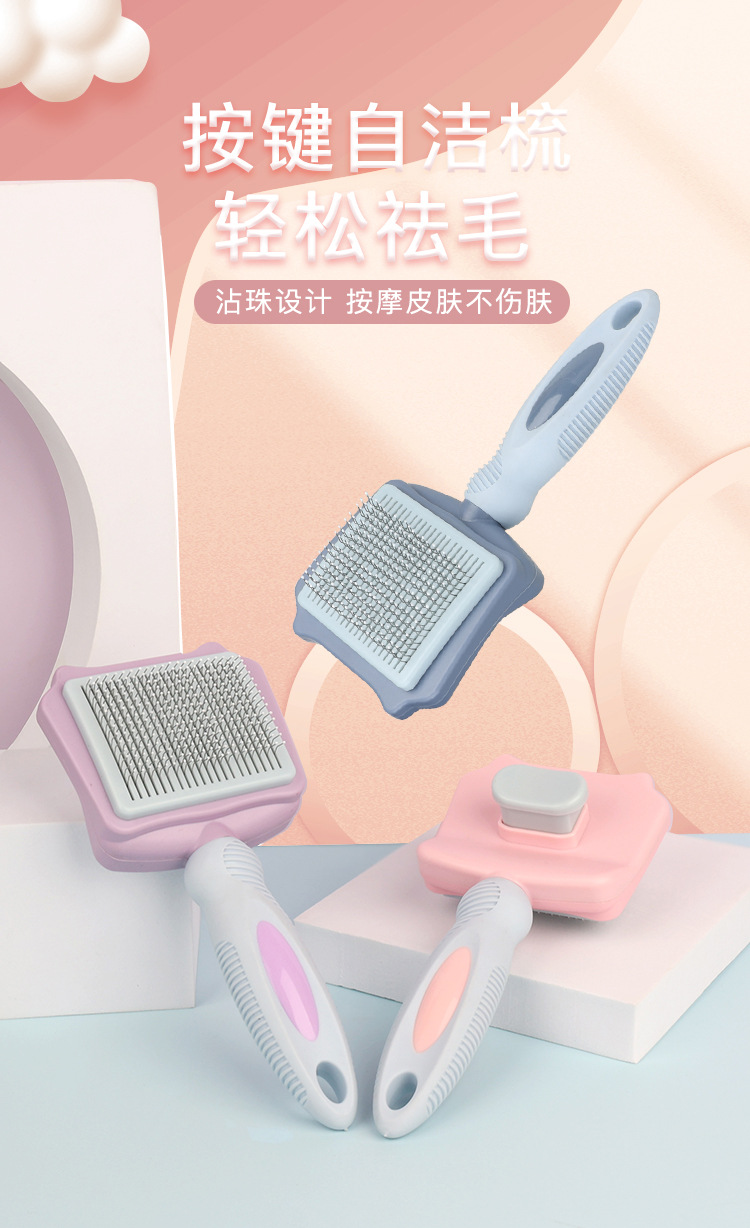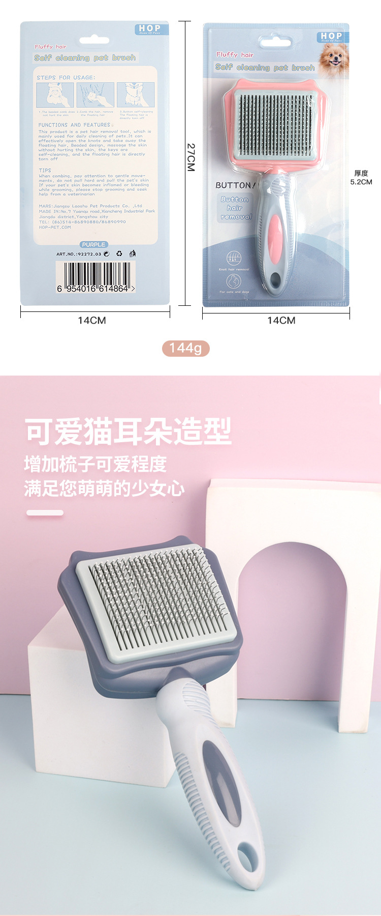 애완동물 빗, 강아지 빗, 고양이 미용 청소 버튼, 제모 셀프 클리닝 바늘 빗, 매듭 개방 및 떠다니는 제모 빗스토어 가기