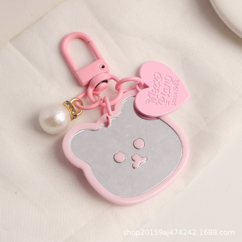 새로운 사랑 진주 열쇠 고리 펜던트 창조적 인 만화 곰 거울 액세서리 커플 헤드폰 세트 가방 장식스토어 가기