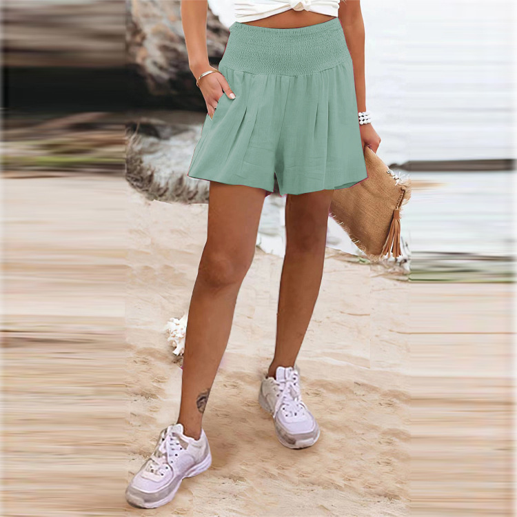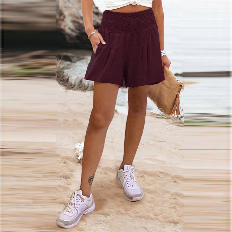 유럽과 미국 2025 여성 독립 스테이션 아마존 베스트셀러 솔리드 컬러 하이 웨이스트 스트레치 반바지 신축성있는 허리 와이드 레그 캐주얼 바지